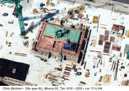 Con il progetto Site specific_Monza 08, Olivo Barbieri (Carpi, Modena, 1954) aggiunge una nuova tappa alla propria ricerca fotografica “site specific” iniziata nel 2003, che ha per soggetto gli insediamenti urbani del pianeta. Barbieri propone una nuova prospettiva di Monza attraverso tredici opere inedite di grande formato, compiendo una sofisticata analisi dei molteplici aspetti di una città che coniuga pregio storico-artistico e industrializzazione.