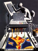 I visitatori di questo ambiguo incrocio tra la Factory di Warhol e Disneyworld possono vedere, inserendo 25 cents nel diascopio, gli assistenti-operai al lavoro. I quadri (quasi mille ogni anno) vengono progettati dall’artista o dal suo staff creativo, realizzati dagli assistenti pittori, titolati da poeti e infine approvati da una commissione e firmati da Kostabi.