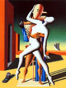 Mark Kostabi ha origini estoni, ma è cresciuto in California dove ha studiato disegno e pittura. Traferitosi a New York nel 1982, è rapidamente diventato uno dei personaggi più noti e discussi del panorama artistico contemporaneo, figura portante del movimento dell’East Village. La sua produzione di quadri è stata affiancata sin dall’inizio da una massiccia e dichiarata operazione di autopromozione, realizzata attraverso un abile uso dei media e una meditata costruzione del “personaggio” Kostabi. L’eclettico Mark pubblica lunghe auto-interviste, si esibisce come pianista e compositore classico (ha pubblicato un cd: “I did it Steinway”) e conduce programmi tv dedicati a sé stesso. Per riunire e coordinare tutte le sue attività, e per rendere la sua produzione ancora più numerosa, fonda nel 1988 a New York “Kostabi World”, una sorta di studio, galleria e fabbrica sforna-quadri in cui una squadra di assistenti realizza le opere: veri e propri prodotti del marchio Kostabi.