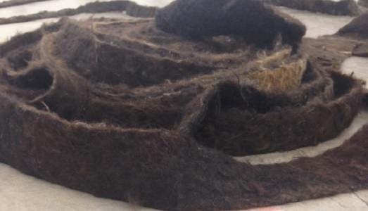 Il risultato è ottimo, anche se le due sale più belle le scoprirete immediatamente all’entrata, dove è in scena Solange Pessoa e la sua Cathedral (foto sopra), bellissimo lavoro inquietante, struggente e decisamente non per tutti gli stomaci: lunghissimi strascichi di tessuto, pelle e capelli infatti si spiegano e arrotolano in tutta la stanza, ricordandoci vita e storia del ‘900, specialmente se si interpreta il lavoro con uno sguardo europeo.