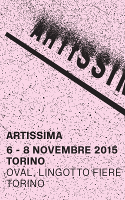 ARTISSIMA 2015 OVAL, Lingotto Fiere Via Giacomo Mattè Trucco70, Torino 5 novembre Preview per la stampa e i collezionisti, Vernissage (su invito) 6–8 novembre 2015 Apertura al pubblico. Tutti i giorni, ore 12.00–20.00 Info Artissima – T +39 011 19744106 – info@artissima.it – www.artissima.it