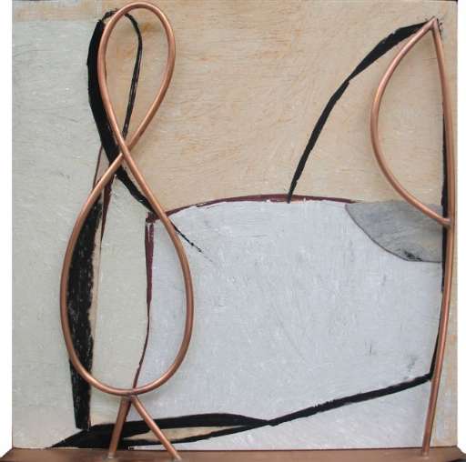 Così, in una delle sale al primo piano di questo storico palazzo in stile neoclassico, recentemente restaurato e un tempo dimora di Massimo d’Azeglio, si svelano i lavori recenti di Cascella. Che, nonostante ami definirsi un action painter, realizza un set di opere a tecnica mista su tela o tavola tra grande e piccola dimensione, di natura certamente astratta ma dal risultato visivo senza dubbio meditativo e segnico. Qualcosa che lo avvicina alla “figurazione” lirica ed essenziale di un Osvaldo Licini della decade ’40-’50, ma fuori tempo massimo o, meglio, fuori dal presente più contingente, per iscriversi in una dimensione di sospensione emotiva. Dove la pittura diventa “scrittura e letteratura, grafìa e colore, composizione e libertà” -come scrive in catalogo il curatore Luca Beatrice- implicando “la sfera del conscio e quella dell’inconscio”. Spesso rivelato da segni a carboncino o a gessetto, che acquistano concretezza e volume, uscendo letteralmente dal quadro sotto forma di elementi in rame, più leggero rispetto al ferro abitualmente usato da Cascella, per creare un alfabeto visivo indecifrabile. Tutto molto rassicurante e perfettamente in linea con la filosofia di questa nuova galleria che, sulla falsariga del circolo al quale appartiene, sembra privilegiare l’understatement come indice di buona qualità nel prodotto artistico.