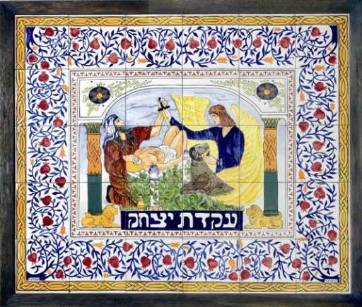 Da qui in poi il percorso a ritroso diviene incalzante. In funzione di icona dell’intero progetto, la “locandina” del V Congresso sionista del 1901, disegnata da Ephraim Moses Lilien, oppure i vasi riccamente decorati che, a uno sguardo attento, risultano essere ricavati da involucri di mortaio. Ancora dall’Accademia Bezalel proviene una ceramica che simboleggia in maniera ancor più stringente la difficile situazione dell’area: si tratta di un gruppo di formelle che raffigurano il sacrificio di Isacco, episodio biblico che ha ancora molto da insegnare. Ma pure la struttura urbanistica benthamiana di Nahalal, fotografata da Zoltan Kruger nel 1945, silenziosamente parla del sentimento di accerchiamento che talora può sopraffare gli esseri umani, al punto da imprigionarsi con le proprie mani.