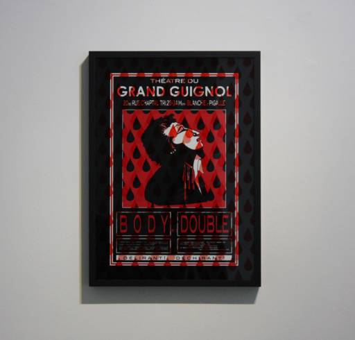La locandina/poster per Body Double #1, ispirata al Grand Guignol, e due olii,