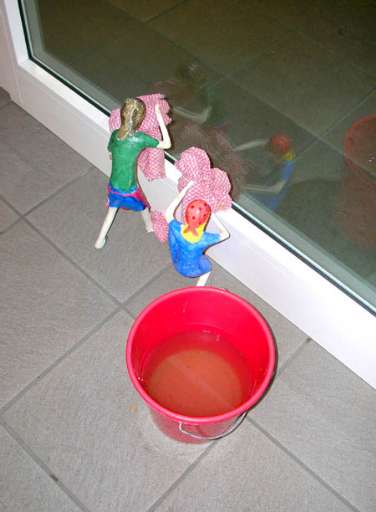 Martelli pneumatici, secchi di vernice e rulli da pittura. In mano a colorati omini di gesso che lavorano, abitano, puliscono e vivono gli spazi urbani. Ma c’è anche qualcuno che se la dà a gambe…