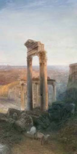 “Il pittore della luce”, com’era soprannominato quest’ultimo, aveva soggiornato a Roma più volte a partire dal 1819 (durante il Grand Tour che lo avrebbe portato anche a Venezia e a Napoli), per tornarvi nel 1828-29, affascinato dalla storia e dalla mitologia. Seguendo la sua metodologia di lavoro, aveva preso dal vero con grande meticolosità gli schizzi delle vedute scenografiche che avrebbe successivamente riordinato in atelier, traducendole in straordinari dipinti a olio. Scorci con le rovine del Foro, campo Vaccino, il Tevere; vedute in cui l’antico si confronta con il contemporaneo.