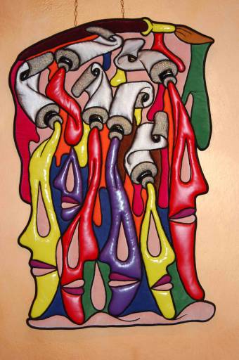Alla Galleria dell’Orologio, nuovo spazio espositivo capitolino, spiccano due grandi tele dipinte nel 2007, Estrema giunzione e Cattedrale vegetale (In Feniglia). Opere gestuali, esplosioni di colori, energiche sgocciolature che rappresentano l’evoluzione degli acrilici su carta degli anni ‘90 come R-ondine, Simmetrica-mente, Pesci di terra, Voli-tivi. A seguire, cronologicamente, le tarsie in panno imbottito, fusione fra arte e artigianato: Il moto è blu (2003), Fuoco (2002), Cosmosi (2000). In mostra anche un mosaico del 2006, Macina, che s’ispira alla tradizione musiva dell’antica Roma, nonché un grande piatto in ceramica dipinto a grottesche, La pelle di Faenza I (1999), testimonianza di un’attività poliedrica.