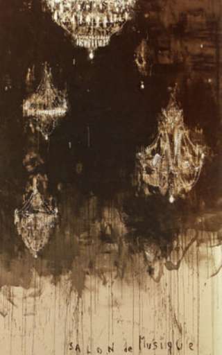 Nel magico scintillio e nella leggerezza di lampadari appesi nel nulla, nell’esaltazione della possente mole di un pianoforte, si esprime l’elegia del simbolo. Ma anche nella raffinatezza e dedizione al dettaglio, nella ripetizione del tema, nelle grandi dimensioni. I delicati lampadari, simboli fragili e sospesi, i pianoforti vigorosi e ben appoggiati. Entrambi stanno sul vuoto che nei primi si veste di tinte scure, quasi ad esorcizzare un mondo nascosto e irraggiungibile, negli altri sbarra come una cortina omogenea la visione di un dietro inesplicabile.