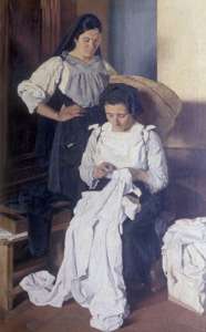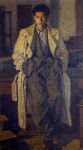 31 dipinti ad olio e 69 disegni si aprono nella sala delle volte scanditi da un’illuminazione che non rende loro giustizia. Dall’oscurità emergono volti violentemente illuminati, sagome che si lasciano alle spalle ombre che non sembrano appartenergli. Sono contadini in fiera posa, ragazzi di strada che anticipano i protagonisti di Sciuscià o di Ladri di biciclette, ma sono anche giovani eleganti paradossalmente sistemati tra casse e panche lignee del suo caotico studio. Immagini immobili che nella loro fissità esprimono una forte tensione spirituale accentuata dal vibrare della densa materia pittorica.