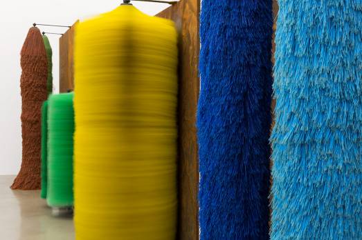Lara Favaretto, Simple Couples, 2009, Car wash brushes, iron slabs, motors, electrical boxes, wires, site specific installation, Courtesy Rennie Collection, Vancouver. Photo: Blaine Campbell
