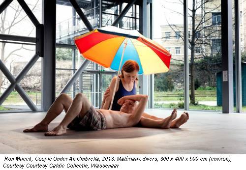 Nell’interessante percorso sui due piani della Fondazione in onore di Ron Mueck, Couple under an umbrella è sicuramente l’installazione più interessante. Da sempre impegnato nella realizzazione di manufatti artistici somiglianti alla realtà in modo quasi agghiacciante, l’artista propone in occasione della mostra parigina tre opere mai presentate prima al pubblico: Woman with shopping, Young couple e la coppia in costume cui manca solo la spiaggia per essere ancora più veritiera.