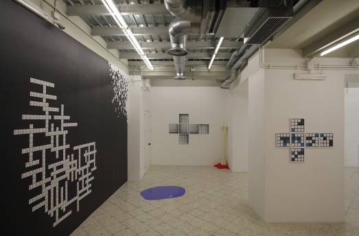 In un noto libro di Dan Brown si scopre una forma di vita congelata nel ghiaccio di cui non si riesce a capire la natura se non ipotizzando che fosse giunta dallo spazio. Questa ipotesi che nel romanzo incombe sulle elezioni presidenziali americane sembra centrare il problema della ri – generazione di un linguaggio quando questo è sedimentato sotto la coltre uniforme di un codice convenzionale omologante. Questa combinazione prende il titolo inglese “As the Ground Becomes Exposed” che tradotto in italiano suona Come emerge il fondo. Questo fondo è una fase linguistica occultata dalle convenzioni. Tra l’ipotesi di un nuovo sistema semantico e la scoperta di una via di significazione i questa mostra si aprono a una serie di suggestioni che Julieta Aranda ha nascosto nella forma di cruciverba. L’intreccio ortogonale, che vediamo stampato sulla parete della galleria palermitana di Francesco Pantaleone, è qualcosa di più di un gioco di enigmistica. Le parole che s’intersecano tra verticali e orizzontali propongono delle varianti del significato lineare affidato di solito a una frase di senso compiuto, sono parole che sfruttano l’impatto all’incrocio, quasi fosse esso stesso il fulcro del processo di significazione. Lo scongelamento, ossia l’emersione dal manto dell’ordinario è una lenta operazione di archeologia della parola che aspetta lo scioglimento dell’uniformità diacronica del linguaggio convenzionale per far emergere dalla rigida impalcatura il substrato immaginario del lessico privato. In altre parole, oltrepassando il dualismo proposto da Sussurre, tra dimensione del tempo e ‘stato di lingua‘, Julieta Aranda si concentra sull’organizzazione, sulla concatenazione reciproca della parola come tratto linguistico autonomo.