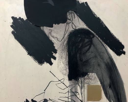 Appena lo spettatore entra in mostra è accolto da una luce morbida e quasi metafisica che lo invita a lasciarsi andare in un’atmosfera trasognante, fluttuante, sovrastorica e sovratemporale, dove appaiono – come quando da una dissolvenza incrociata che offre la cinematografia vien fuori l’ombra o la sembianza di qualcosa, di qualcuno – una sequenza di carte (quattordici più esattamente), disposte a parete, come fotogrammi su cui si depositano materie e memorie, segni e sogni.