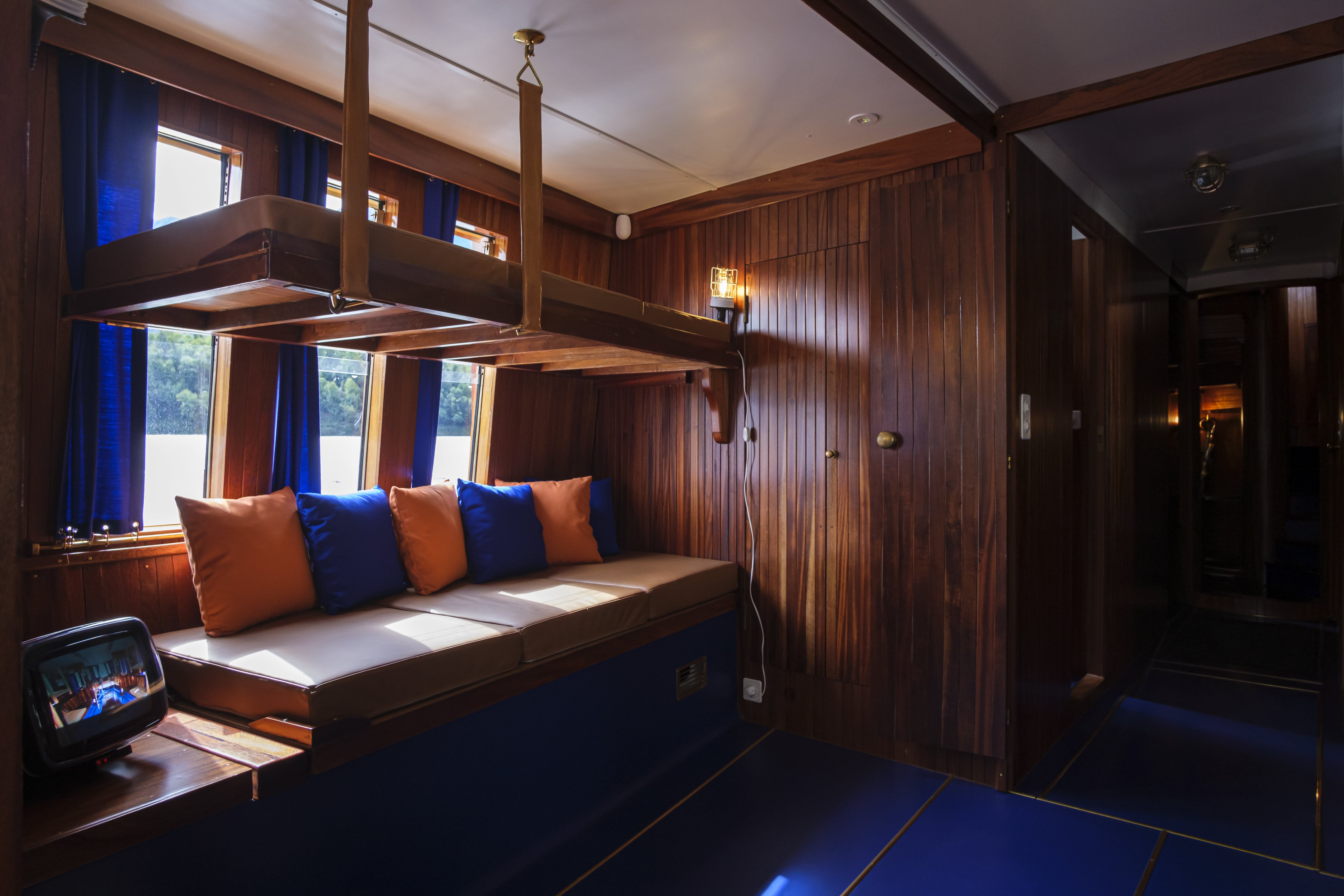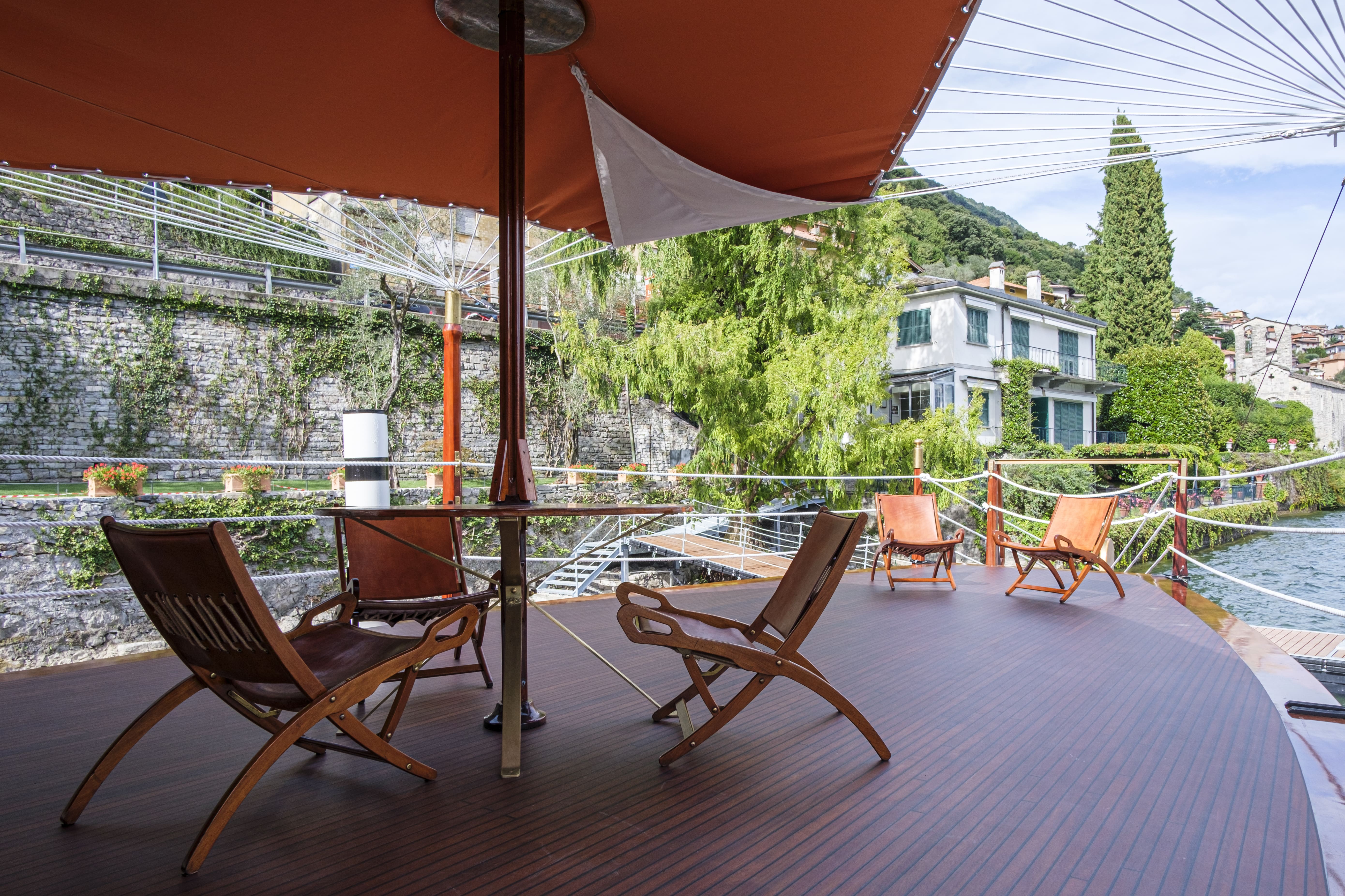 Dalle prime indagini emerse subito anche la condizione di forte deterioramento dello scafo, ovvero la parte strutturale della Velarca, non più restaurabile. Da qui la decisione di trainare la barca da Ossuccio a Maslianico, presso il Cantiere Ernesto Riva, per procedere con la ricostruzione dello scafo e della coperta di prua e di poppa, e con il recupero, anch’esso con integrazioni consistenti, del volume abitativo soprastante. Dopo la conclusione dei lavori strutturali, è iniziato il restauro degli arredi originali, con grande attenzione a preservare l’integrità dell’opera e lo spirito del progetto originale, restituendo alla Velarca la sua atmosfera unica e la piena funzionalità.