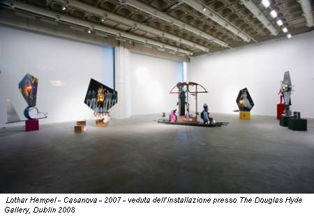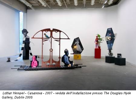 La prima impressione è quella di affacciarsi su un palcoscenico. Il lavoro di Lothar Hempel (Colonia, 1966) è divertente e inaspettato. Un’atmosfera carnevalesca anima lo spazio più grande (e buio) della galleria ospitata all’interno del Trinity College.