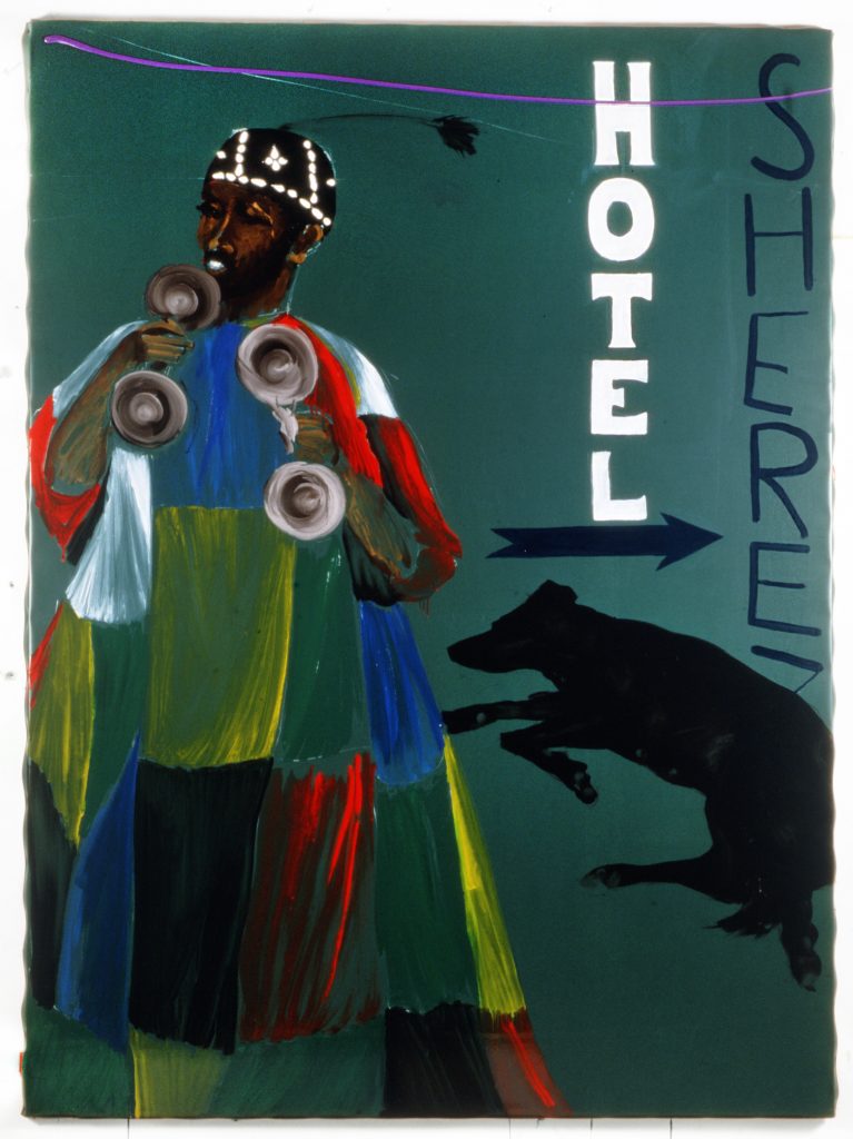 Ho scelto gli artisti che in questi anni mi hanno seguita con più attenzione e che hanno manifestato entusiasmo verso il mio lavoro come io verso il loro. Esporrò un capolavoro di Aldo Mondino “Hotel Sheraz” e un’opera di Chiari, artisti che in vita hanno stimato molto il mio lavoro.