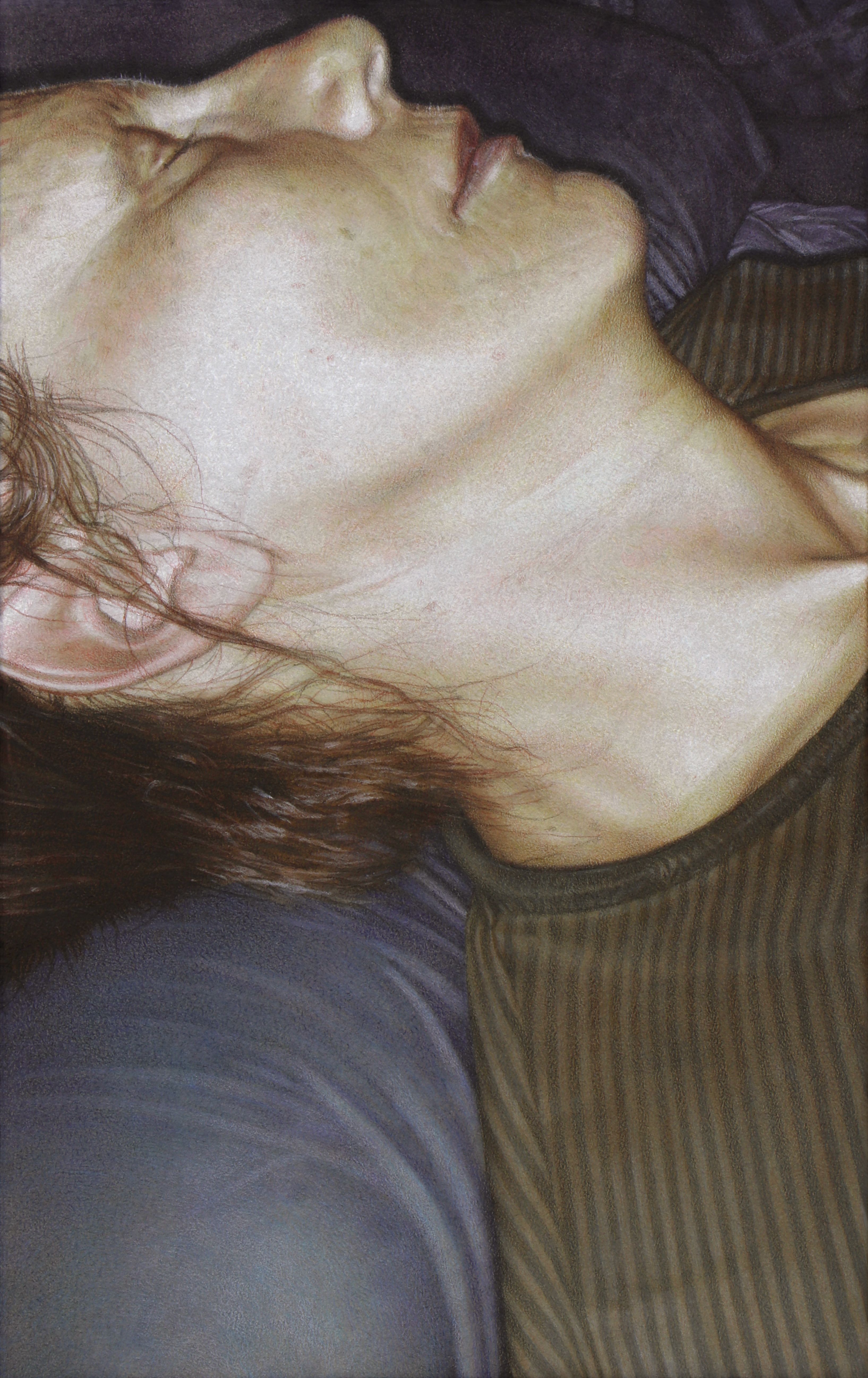La vita umana nel territorio, la geografia e il senso di appartenenza sono evidenti nelle opere pittoriche di Michele Tocca (“After Rain”, “Dry rain-jacket”, “Woods”, 2023) in cui avviene un passaggio tra il corpo, la plasticità della giacca e il non umano, la nebbia, e nelle porcellane e stampe, messe in relazione, di Diego Cibelli. Nel suo caso la rappresentazione, onirica e inquietante, è un’ibridazione tra mondo naturale e umano, pur partendo dalla tradizione della ceramica di Capodimonte.