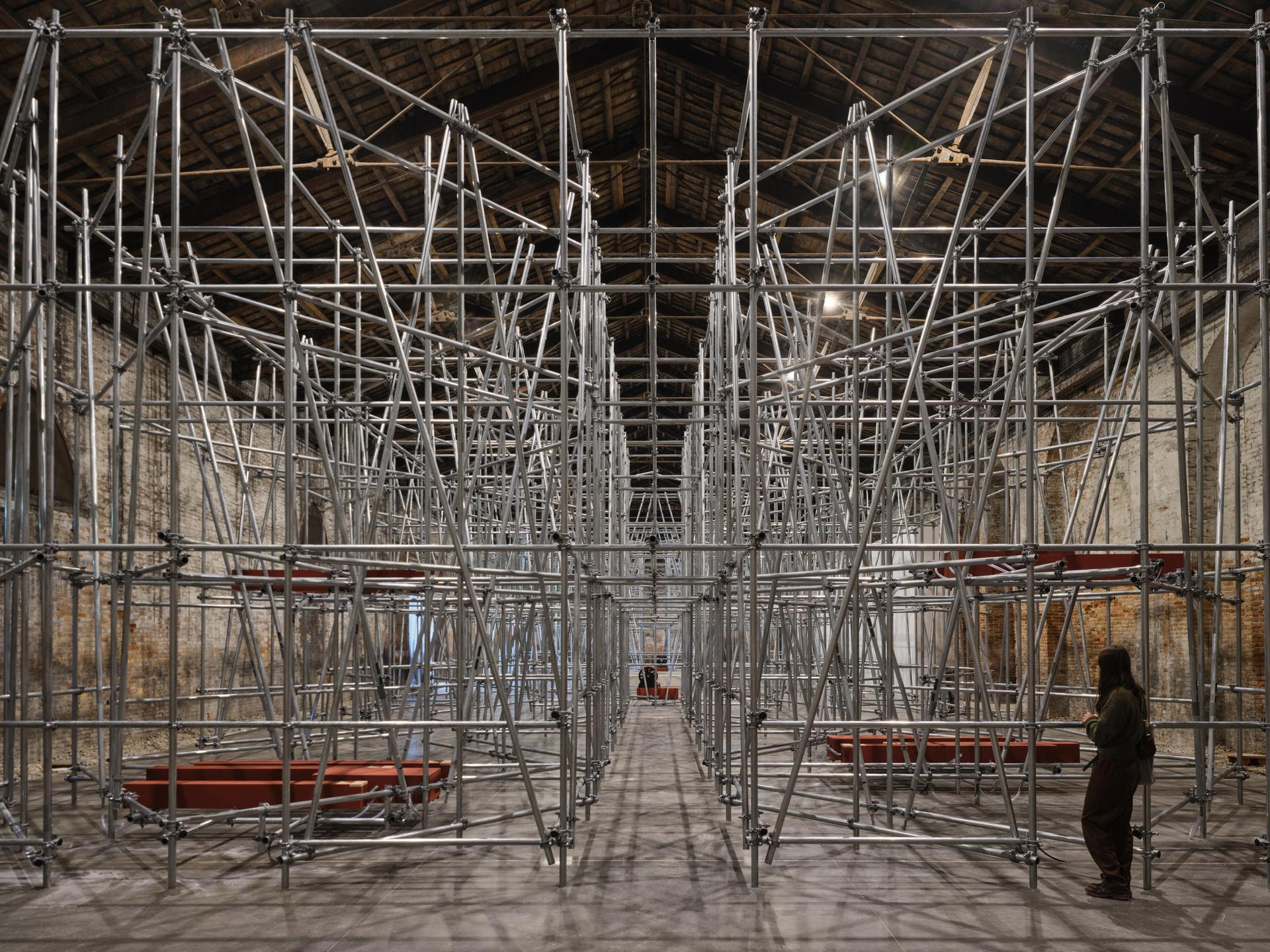 A cura di Luca Cerizza, il Padiglione Italia è tappa obbligata, non solo per quel (in)sano campanilismo che emerge nelle manifestazioni di portata internazionale ma soprattutto perché è di notevole grazia la macchina evocativa messa a punto da Massimo Bartolini. Non è piaciuto al sindaco di Venezia Luigi Brugnaro, che durante la presentazione del 19 aprile ha dichiarato di preferire «Il figurativo», ma il padiglione è tutt’altro che inefficace. Un appagante senso di azzeramento si insinua tra i tubi innocenti svuotando i cuori e le menti appesantite dagli affanni. Si bisbiglia, non si chiacchiera quasi, si osserva, ci si riconcilia, si perdona la prima sala spoglia, a eccezione di una piccola statua in bronzo di un Pensive Bodhisattva all’estremità di una lunga canna d’organo, si assapora il giardino all’italiana della seconda, un intricato labirinto di tubi innocenti freddo solo apparentemente e che cela le composizioni sonore di Caterina Barbieri e Kali Malone. Al centro, una composta meraviglia, una vasca-fontana al cui interno respira un liquido a base di acqua e argilla che respira ritmicamente, elastico e viscoso (qui il nostro articolo completo).