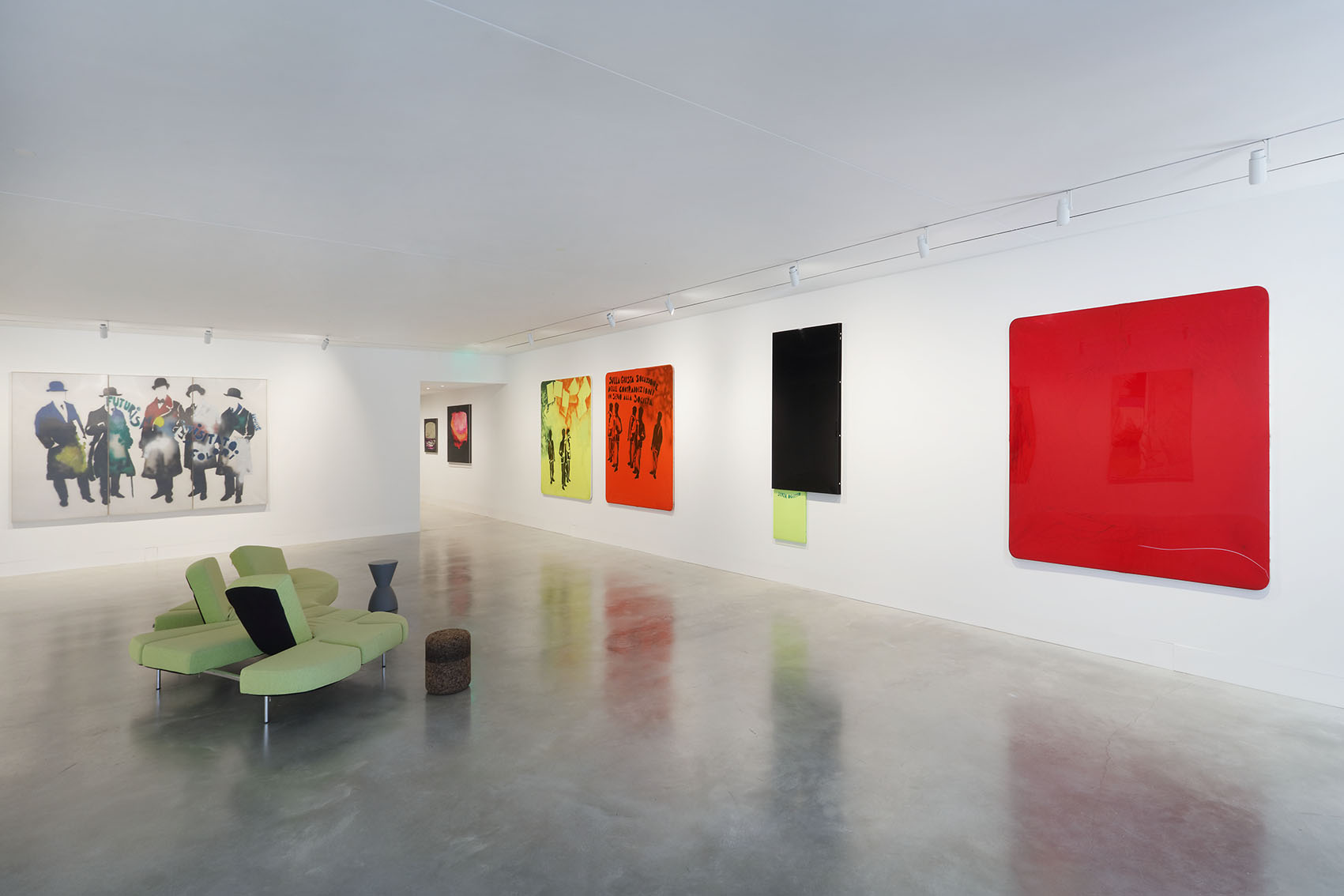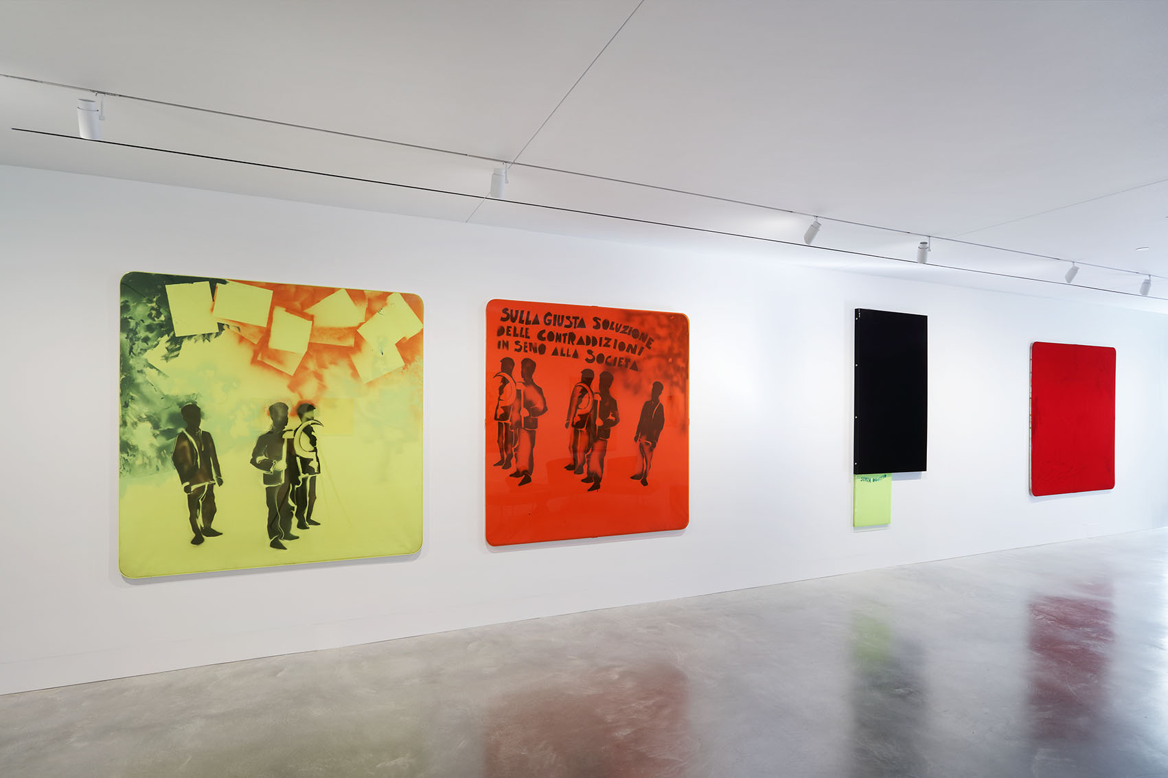 Germinal si apre con una serie di quadri monocromi con cui Schifano si presentò nel 1960: campiture di un solo colore, dipinte a smalto. I titoli, destinati ad accendere l’immaginazione del visitatore, rivelano la poliedricità del pensiero di Schifano, dal jazz (Musica di Ornette) al movimento e all’eccitazione della Roma contemporanea (Piazza del Popolo) passando per la storia dell’arte (Venere di Milo). Al lato opposto dei dipinti monocromi, si trovano alcune opere dei primi anni Sessanta in cui le superfici monocromatiche, come osserva Fossati, «Cominciano a popolarsi di segnali, numeri, lettere, segni, forme, marchi e note». Tra queste, anche i dipinti che hanno incorporato il famoso logo della Coca-Cola, considerato da Schifano una “propaganda” per la penetrazione in Italia del consumismo industriale statunitense.