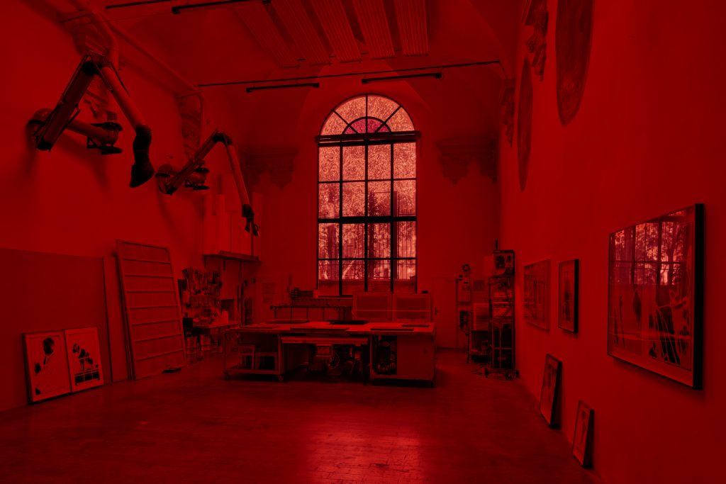 In occasione di Art City, tra i Main Projects, il Laboratorio degli Angeli a Bologna presenta “Ellissi” dell’artista Giorgio Andreotta Calò, a cura di Leonardo Regano. L’opera, immersa in una luce rossa e soffusa, che avvolge l’intero spazio espositivo, rappresenta la completa versione dell’opera fotografica Annunciazione, realizzata nel 2018 contestualmente ad Anàstasis (άνάστασις), progetto installativo realizzato presso la Oude Kerk di Amsterdam, vincitore della seconda edizione del bando Italian Council promosso dal MiBACT. L’opera nasce da uno studio effettuato dall’artista sul ciclo delle Storie di Maria, rappresentate sulle vetrate dell’Oude Kerk e, per Art City, Calò ha scelto di riprendere questo tema proprio in uno spazio espositivo ubicato all’interno di una ex chiesa dedicata al culto della Vergine Maria, intitolata a Santa Maria degli Angeli e, divenuto laboratorio per l’arte e per scambi culturali.