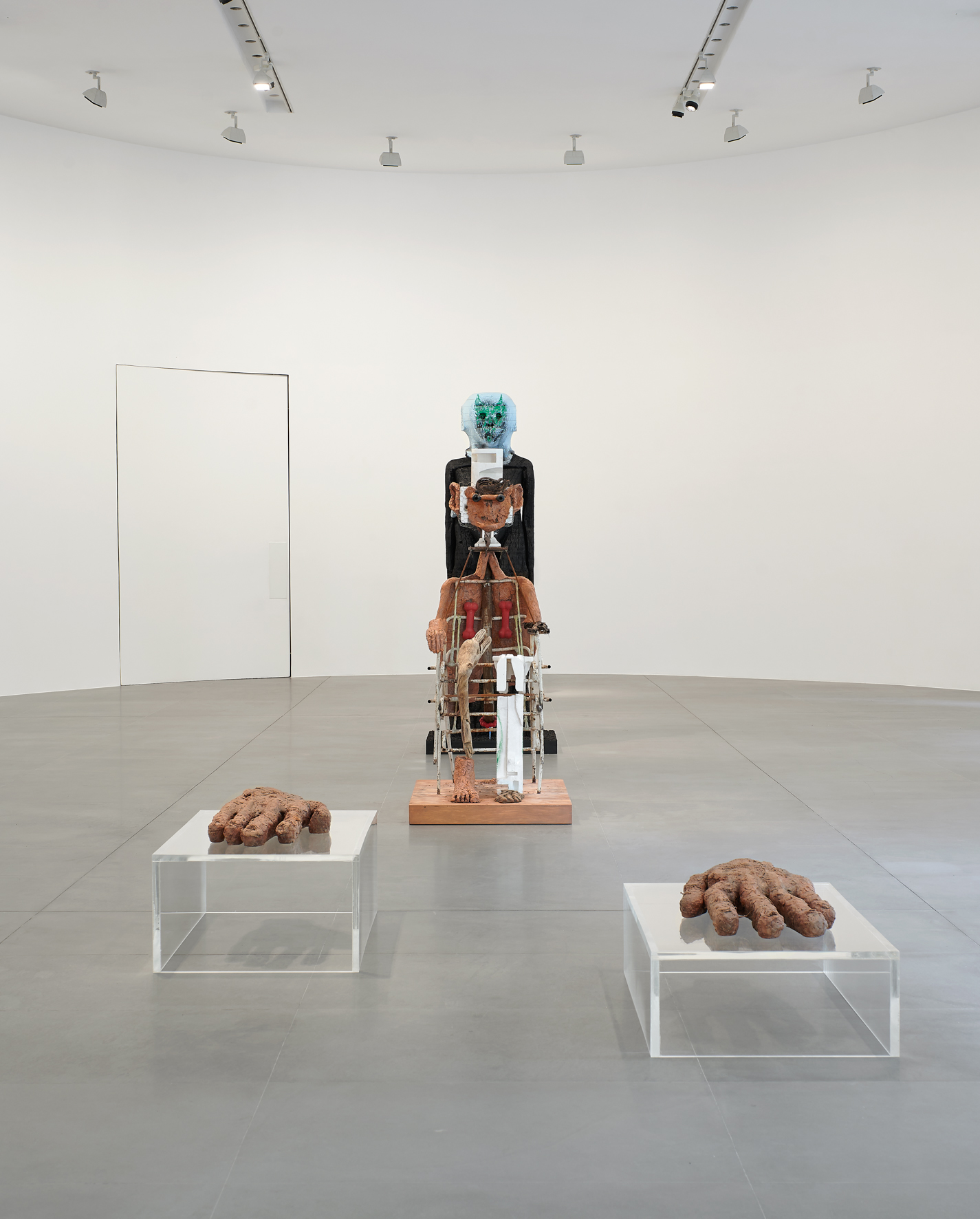 Il rapporto di Huma Bhabha con il mondo classico è quindi certamente molto forte, nonostante i riferimenti culturali nel suo lavoro siano decisamente eterogenei in un sapiente mix di Hi and Low, in cui fa la parte del leone il mondo della fantascienza e in particolare i visionari romanzi di Philip K. Dick, o il cinema body horror di David Cronenberg, le sculture lignee di Costantin Brancusi, i gessi di Auguste Rodin, i corpi filiformi di Giacometti, i combines di Rauschemberg, le maschere tribali africane fino all’estetica cartoon di una serie televisiva di culto come la canadese South Park.