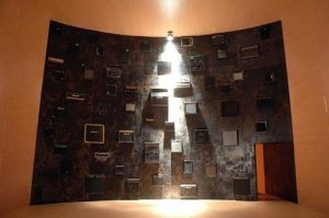 Su questa scia, in cui si ribadisce la perenne attualità del passato, s’inserisce anche il lavoro di Vascellari, forse meno suggestivo da un punto di vista scenografico ma altrettanto calzante sul piano tematico. L’artista plana sulla storia, fino a precederla. Arriva alla Preistoria, al periodo della caccia, della raccolta dei frutti spontanei, ma soprattutto delle caverne, luoghi in cui i nostri lontani antenati erano costretti a rifugiarsi per difendersi dalle minacce esterne. La natura, benigna e maligna insieme, ieri come oggi. Anche nel presente siamo stati costretti a rifugiarsi nelle nostre case per difenderci dalla pandemia, anch’essa risultato della natura, o forse dell’uomo su di essa. Partendo da queste considerazioni, durante la reclusione forzata del lockdown, Vascellari ha iniziato a riflettere sulle forme d’arte delle origini. La sua attenzione si è focalizzata su un graffito di 27000 anni fa, rinvenuto nella grotta di Cosquer, in Provenza, ritraente un pinguino. Da questa immagine primordiale l’artista ha tratto, attraverso la fusione a terra, tecnica scultorea tra le più antiche, una grande lastra in alluminio montata su un supporto, anch’esso metallico, alto cinque metri e largo sei. Le grandi dimensioni non sono fini a se stesse. Nel pensiero dell’artista, vogliono ristabilire il giusto equilibrio tra uomo e natura, lo stesso che esisteva all’epoca dell’uomo preistorico, prima che l’industrializzazione massiva e la tecnocrazia lo compromettessero per sempre. La natura, ci dice l’artista, al tramonto dei tempi (necessaria premessa di una nuova alba) riconquisterà il suo equilibrio con l’uomo, ma, si suppone, a caro prezzo per l’umanità. Una riflessione perfettamente in tema con la travagliata conferenza sul clima di Glasgow appena conclusasi.