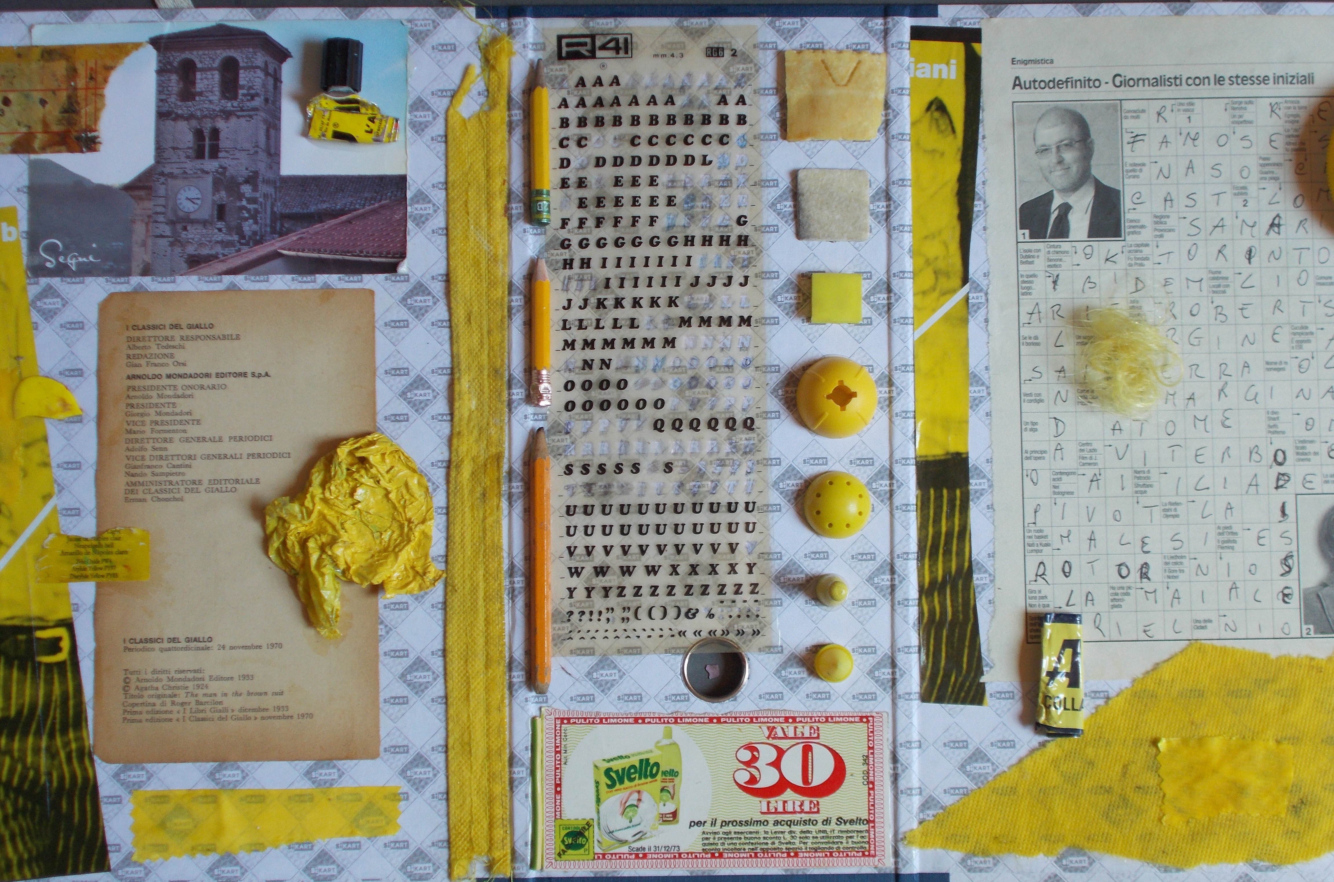 «A volte ho il sospetto che l’importanza della mia esistenza non risieda tanto nelle mie opere, quanto piuttosto nello stile di vita e nel tipo di introspezione che pongo nei confronti dell’esistenza. Una filosofia di vita che mi spinge ad appuntarmi costantemente ovunque i pensieri e le riflessioni che si manifestano nella mente. In genere, sono foglietti dove riporto circostanze, avvenimenti, asserzioni, ponderazioni, valutazioni, lamentele, congetture, etc. Di tanto in tanto cerco di mettere ordine a questo mare di fogli e foglietti per poi trascrivermeli su delle agende, ma è una follia, sono dappertutto: sul tavolo, sopra il PC, in camera da letto, nella libreria, in salotto, nei cassetti, in vari raccoglitori, dentro dei quaderni, nei libri, in delle riviste, in delle cartelline, dentro delle buste, in varie attaches, mollette e porta carte. Il fatto divertente è che a volte quando li vado a rileggere non capisco cosa ho scritto, e la mia figlia più piccola (che ora ha 18 anni da poco compiuti) è un portento, e ha sviluppato la capacità, tra le diverse che ha, di riuscire a capire anche le parole e le frasi che io stesso, a volte rileggendo, non riesco a decifrare. Non so come faccia. Ho inoltre una serie di manie che consistono nel contare, misurare, conservare e ammassare praticamente di tutto: dalle etichette dei capi d’abbigliamento agli scontrini della spesa, dalle unghie tagliate ai tappi di dentifricio. Una volta che inizio ad accumulare qualcosa, spesso senza ricordare neanche il perché, non riesco più a smettere. Ultimamente mi sono ricordato che incominciai a serbare i tappi del dentifricio perché mio figlio, dopo aver visto un castello costruito con i tappi di dentifricio nel film “La fabbrica di cioccolato” mi chiese di farne uno. Ora Mairo si è laureato ed io continuo a non buttare i tappi. Una volta ho sentito dire da un accumulatore compulsivo che lui faceva quello che faceva perché era una scommessa con sé stesso, forse anche io potrei dire la stessa cosa, ma non saprei dire che tipo di scommessa. La verità è che poi nel tempo spesso utilizzo tutto quello che ho conservato per fare delle opere. Per questo non riesco a disfarmi quasi di nulla. Nel 1998, per parlare del mio progetto R.A.U. Reperti Arteologici Urbani, ho realizzato una foto plotter con la mia primogenita Soele che allora aveva circa 2 anni, dove dico: “Come faccio a dire a mia figlia che non deve toccare la robaccia per terra in strada? Come faccio a dire che può farlo solo il papà, perché fa l’artista.”. Ecco, grazie a questa attitudine, riesco a realizzare opere d’arte che hanno una storia e dicono la loro. E forse il valore delle opere di un artista andrebbero lette anche alla luce di questo tipo di confessioni. Le Corbusier ha detto che soltanto un’ossessione può riscattare l’esistenza da una banalità. Questo potrebbe essere un altro motivo del mio agire».