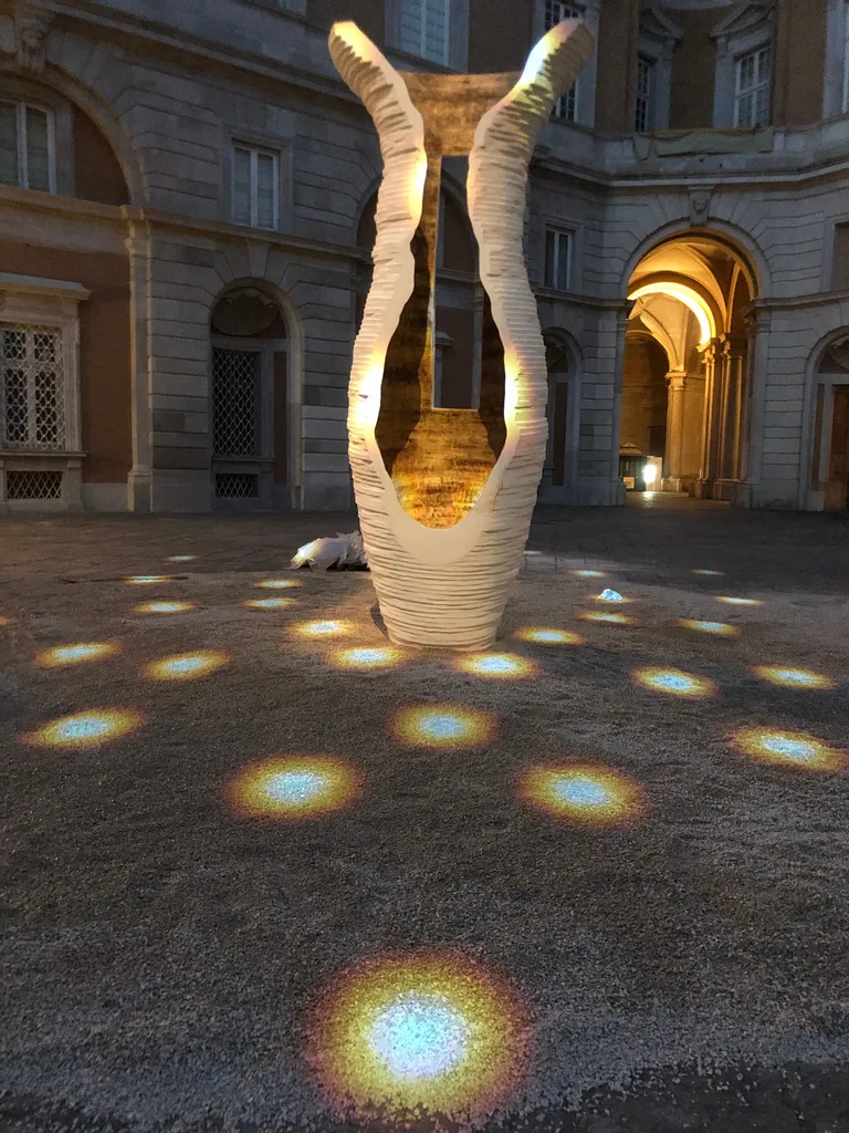 All’interno del cortile della Reggia è presente l’opera Locus Solis, un’assonanza con l’opera letteraria Locus Solus di Raymond Roussel, un bianco vaso sonoro squarciato d’oro, attorniato a terra da pietre di alabastro, con un esplicito rimando alla precessione degli equinozi e della luce. Un “locus solis” in cui il sole irradia l’architettura e si concentra sul grande vaso di alabastro, ma anche un “locus solus”, ovvero, un luogo solitario, da essere solo immaginato. A tal proposito, l’artista precisa, «è un segno che mi ha colpito. Rimanda a una maturazione del minerale nella miniera. Il bianco albeggiare dell’alabastro scolpito avvolge l’oro disteso sul rosso cinabro dipinto».