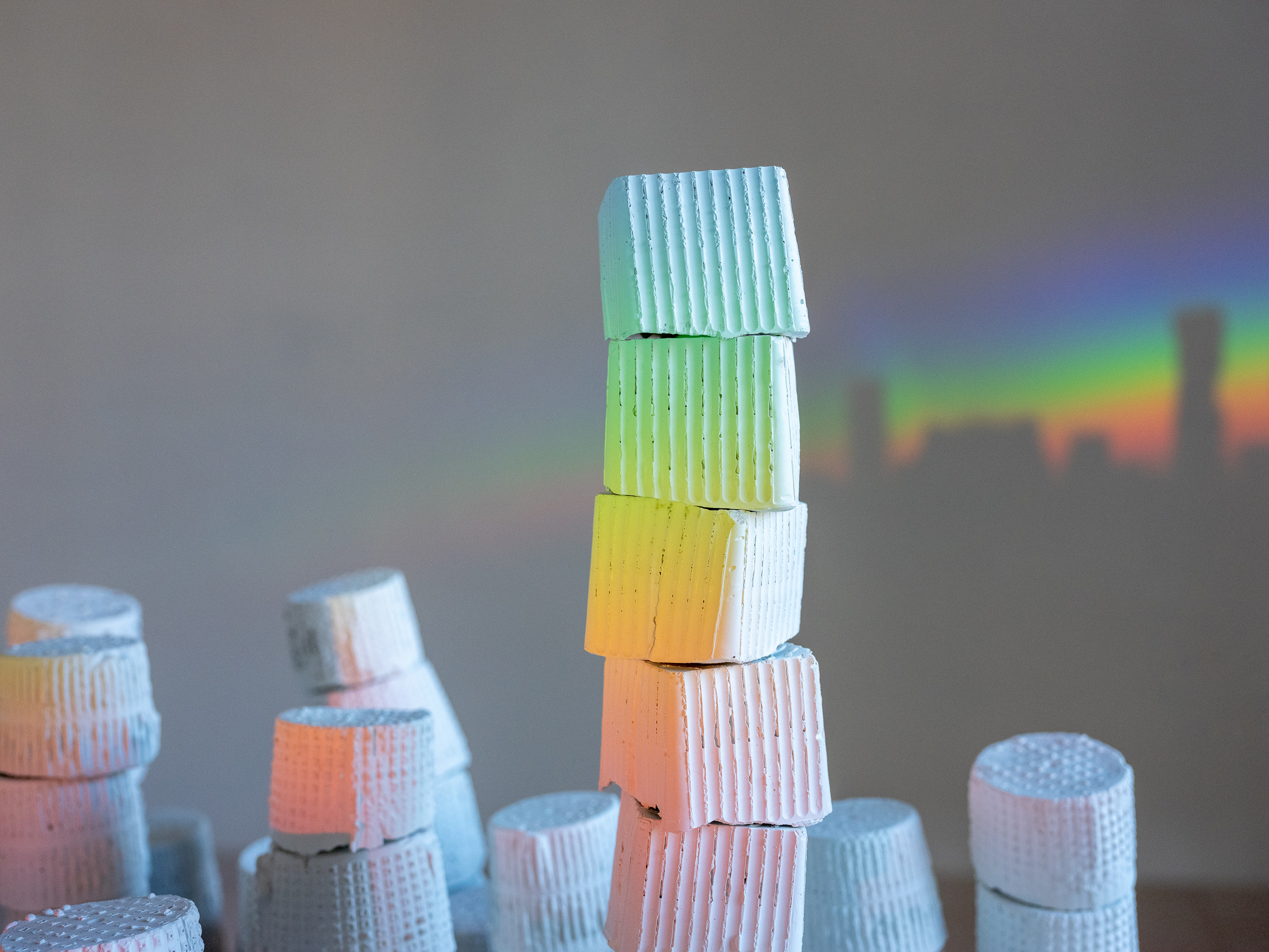 Tra le creazioni più emblematiche di De Cunto, tuttavia, troviamo le Ricottine, una serie iniziata qualche anno fa. L’artista realizza queste piccole sculture utilizzando il cemento, un materiale in apparenza distante dall’idea di sofficità che esse evocano. Le Ricottine, in decine di esemplari, sono raccolte in una sorta di incubatrice, quasi che De Cunto voglia preservarle dai pericoli del mondo esterno. Tuttavia, nonostante l’espressione “Fare le ricottine” – ne La ricotta di Matilde – che ha mosso più o meno consciamente questa serie di lavori, la loro scorza resistente lascia intuire siano piuttosto pronte a confrontarsi con ciò che le attende fuori.