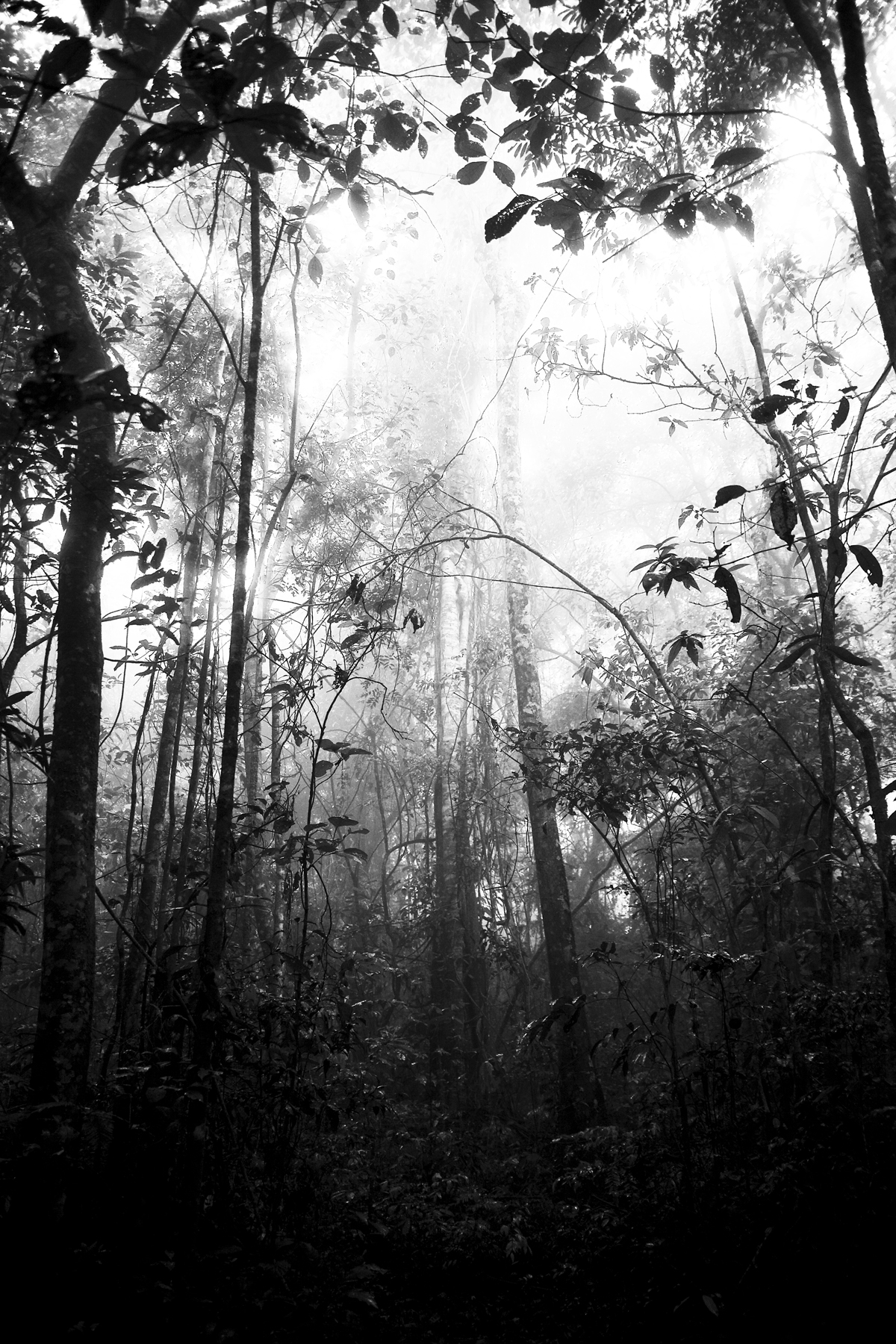 Le fotografie della foresta sono state tutte scattate in un unico luogo, nel corso di circa tre ore. Questa serie tenta di catturare un momento in cui la percezione è alterata dall’invasione della foresta da parte delle nuvole, ampliandone i confini. Lo scenario stesso era quasi monocromatico e tutti i colori erano tenui. Il testo che accompagna la serie è una voce nel diario di viaggio del “Paradise in the New World”, che specula sulle ramificazioni fenomenologiche di tale esperienza. Le immagini risultanti assomigliavano così tanto a dipinti a inchiostro nero che le ho stampate su carta ad acquerello.