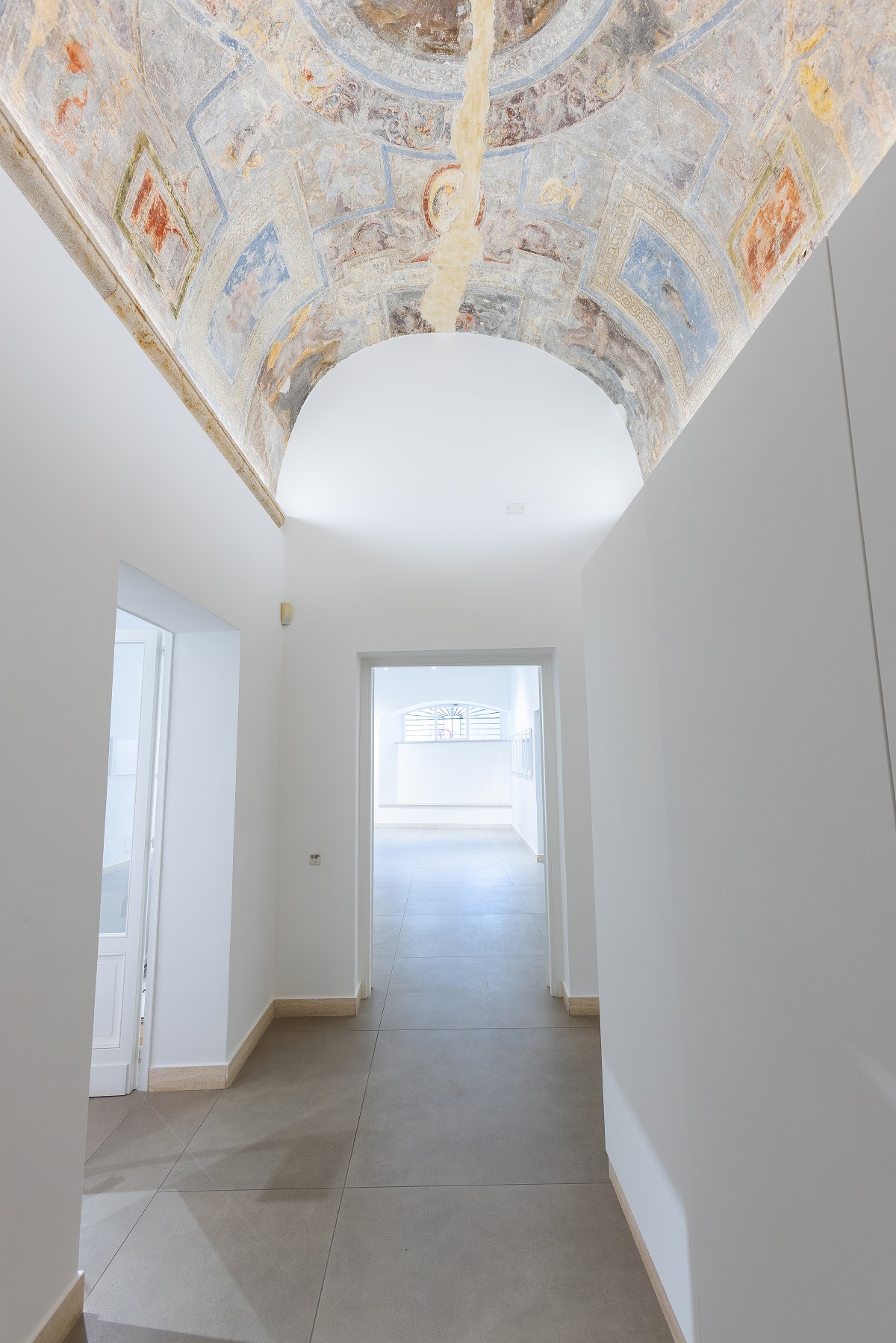 Oltre alle sale del piano terra è aperta al pubblico anche la biblioteca del Palazzo, anticipata dalla scultura bronzea La conoscenza (2015) di Mimmo Paladino e due tele di Fabiana Donato realizzate quest’anno.