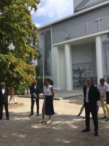 In una Biennale dai Padiglioni chiusi e i vialetti deserti, la Alemani, unica donna, poiché la direttrice danza ha un impegno all’estero, in mezzo ai cinque direttori maschi e al presidente che resterà e interverrà fino alla fine, inizia a guidare il tour dedicato alla stampa il giorno della presentazione.