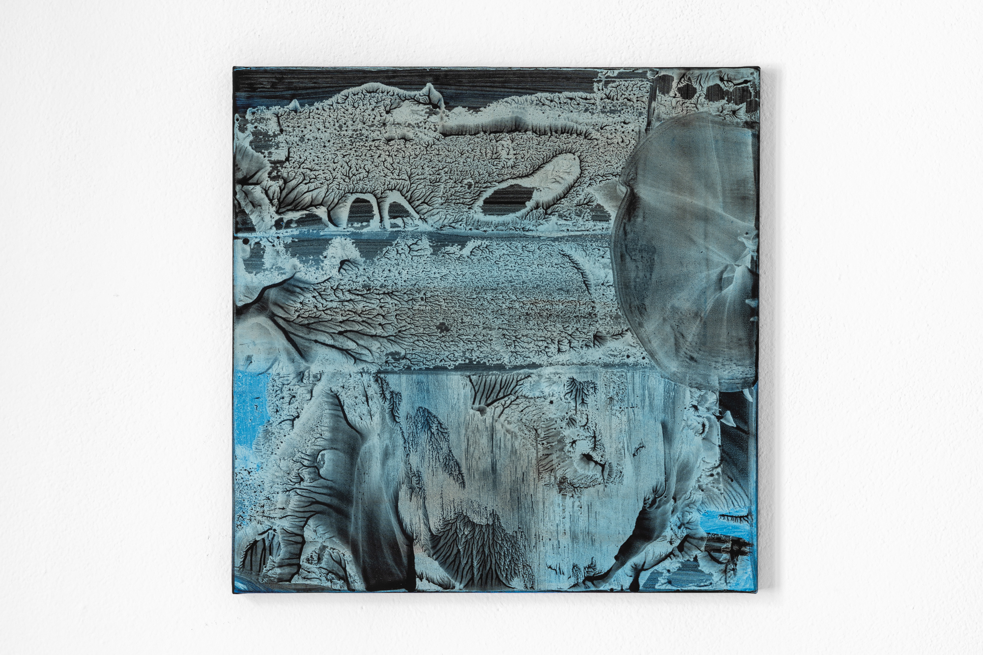 «Nasco come pittrice, ho sempre dipinto, e sempre in modo compulsivo, finché fare un altro quadro non diventerebbe maniera, lì mi fermo. Mi pongo nei confronti della pittura in modo equivalente rispetto alle altre tecniche, ma c’è sicuramente un’astrazione, un’aniconicità, e una delicatezza che mostra un fianco difficile da scoprire con la rigidità e la secchezza con cui utilizzo gli altri mezzi espressivi. Dipingere è quell’azione dove mi svincolo dall’urgenza soffocante e lascio spazio ad immagini libere, volutamente evocative. I quadri in mostra nello specifico appartengono a una serie intitolata Figure, ispirata al libro Frammenti di un discorso amoroso di Roland Barthes. Pensandoli come un insieme (li realizzo sempre in grandi quantità contemporaneamente), li ho concepiti come frammenti didascalici del mio discorso amoroso, raccontando un senso di agitazione, uno scuotersi. Questo fare assorbire e spurgare il colore, come ti dicevo, è solo un pretesto per parlare ancora della liquidità dei rapporti e della loro complessità. Quello che rimane impresso sulle tele è un discorso gentile, fatto di gesti e trame di un turbinio mentale».