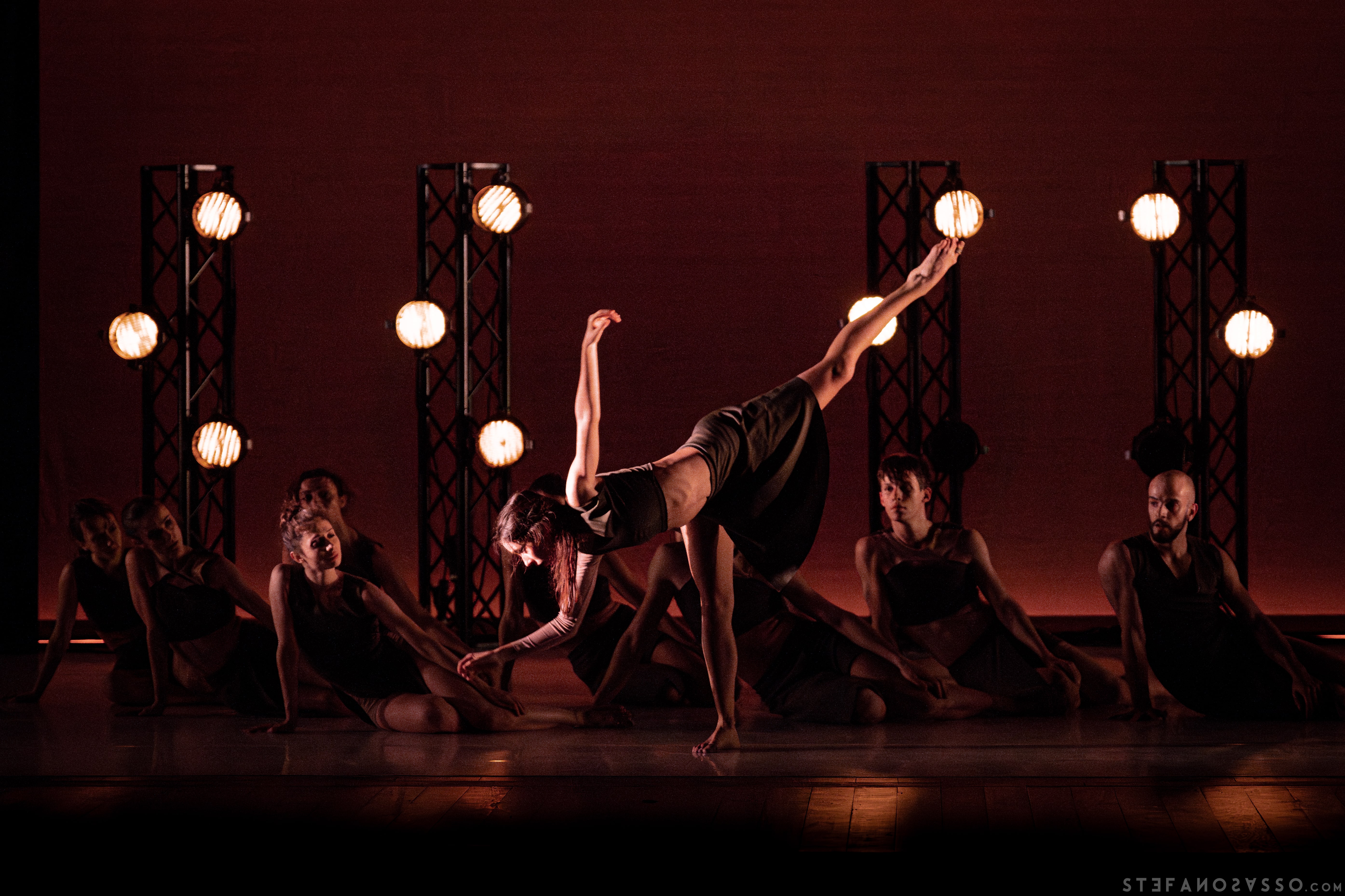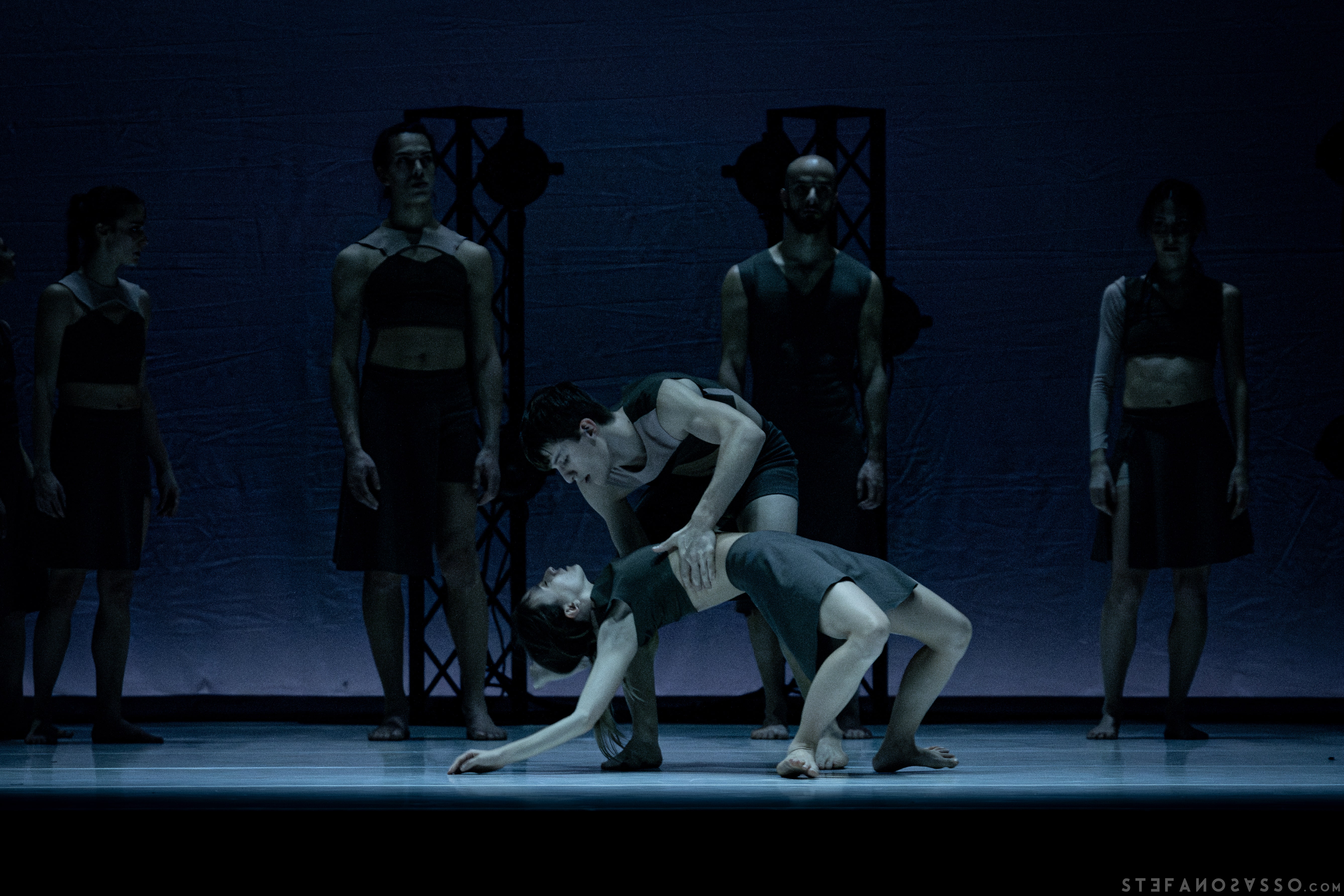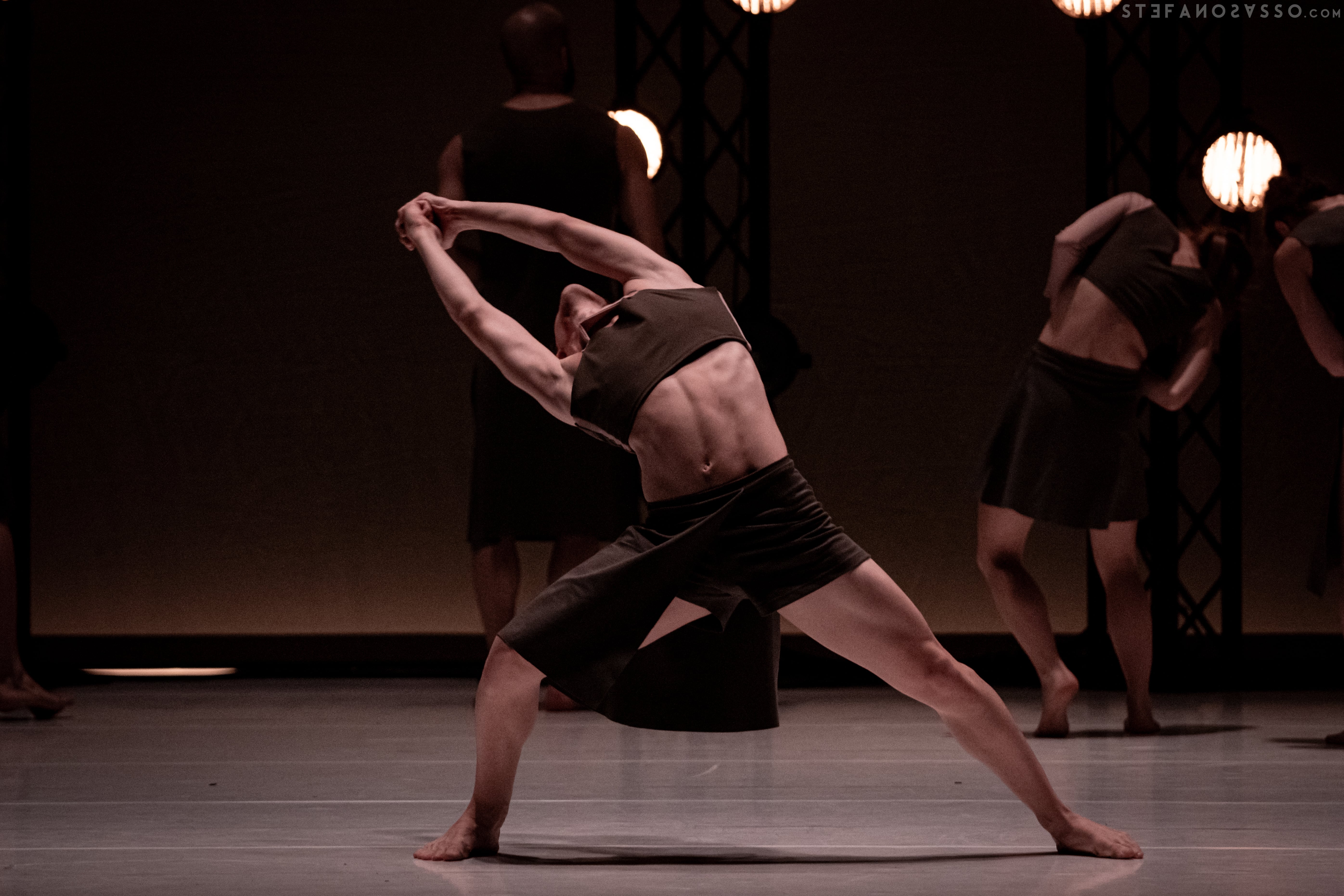 A segnare la coreografia è il consumarsi del rito primordiale verso una liberazione. Velocità e destrezze muovono tutto l’ensemble dei bravi, giovanissimi, danzatori di Eko. Uno di loro, sperduto, arriva dalla platea seguendo un fascio di luce. Appoggerà la testa e l’orecchio ad ascoltare la terra, alzando poi le gambe come a piantarsi su quella zolla sconosciuta. Si aggiungeranno altri usciti da più lati, anch’essi pervasi da un senso di smarrimento, popolando la scena che risuona di suoni cupi, metallici, minacciosi, di sonorità elettroniche (autore Benedetto Boccuzzi, il quale ha intestato la sua composizione Electronic Augmentations to Stravinsky’s Rite of Spring) che si aggiungono alla partitura stravinskiana. Questa verrà interrotta in più momenti dilatando il tempo per ritardare il sacrificio finale già presagito, e riprendere, dopo attimi di sbigottimento, il ritmo selvaggio.