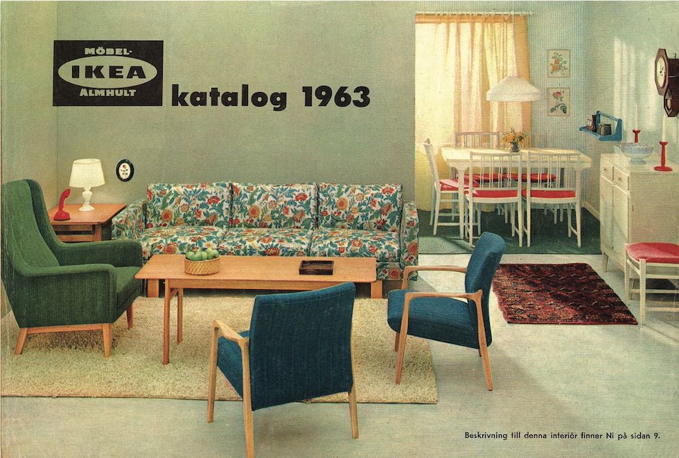 Diventato ora uno dei più diffusi al mondo, con 16 milioni di copie annuali tradotte in 62 lingue, il catalogo di arredamento IKEA è nato da un brevissimo fascicolo di 16 pagine in cui i prodotti venivano disegnati a mano. Tutto è iniziato nel 1943 quando lo svedese Ingvar Kamprad fondò l’azienda a soli 17 anni cominciando con la produzione di orologi, portafogli, penne e qualche cornice. Fin da subito l’obbiettivo era vendere gli oggetti a prezzi estremamente competitivi. Anche per l’epoca il costo era talmente basso da far dubitare i clienti della qualità dei prodotti: così Kamprad ebbe l’idea di cominciare a organizzare i primi showcases. Il primo in assoluto si svolse a Älmhult e, accompagnato dall’uscita dei primi cataloghi, ebbe successo immediato. Per la prima volta erano stati creati ambienti abitativi integralmente arredati e pronti per l’uso a prezzi super accessibili.