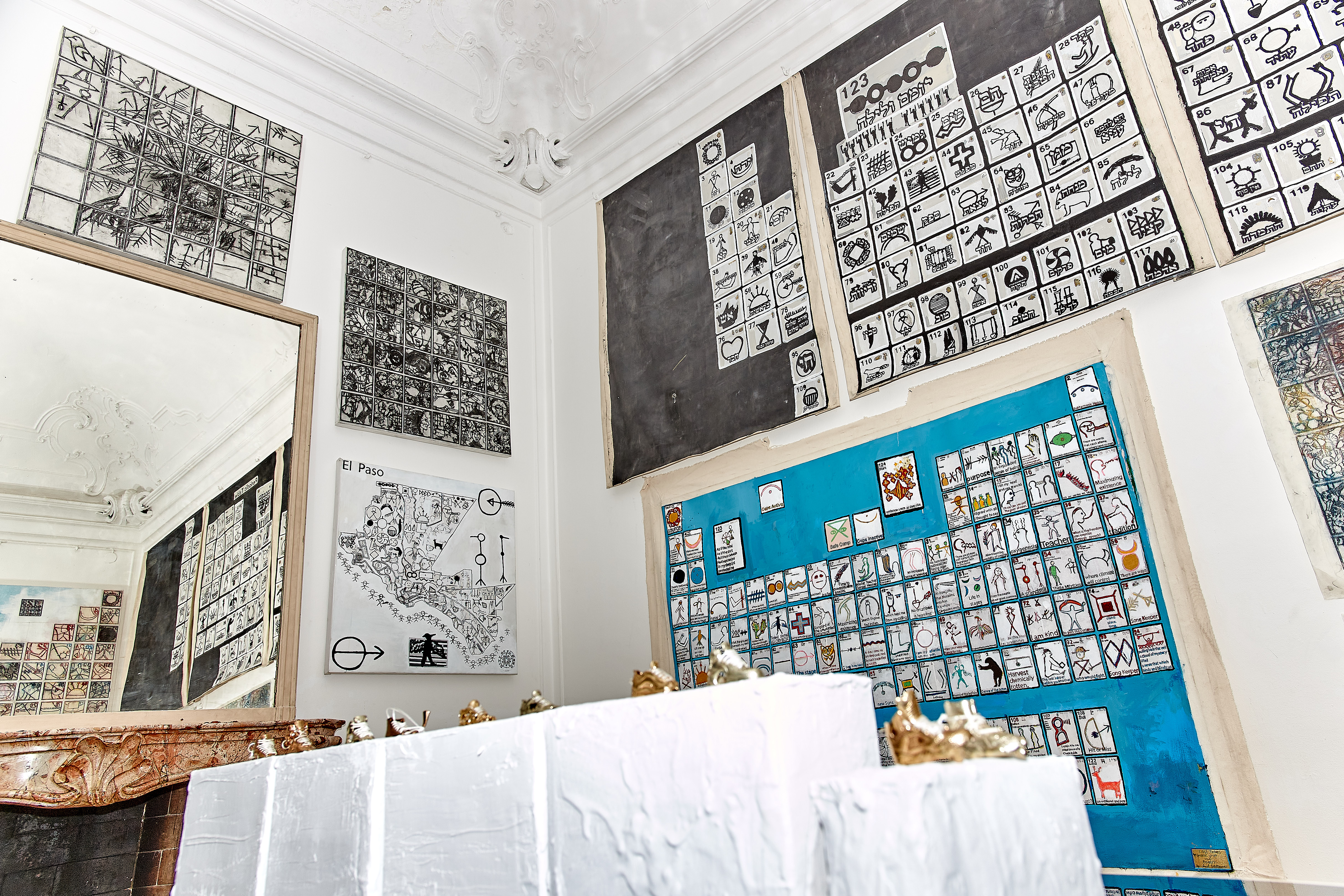 «Non si tratta di scegliere da che parte stare. Si tratta della Madre Terra e del pianeta, e di quanto siamo fortunati ad averne uno in cui vivere, nonostante tutti gli sforzi che facciamo per distruggerlo. Si tratta solamente del modo in cui ci inseriamo nel pianeta e di come ci trattiamo l’un l’altro. Non è una questione di confini, perché ognuno alla fine possiede i propri elementi. Ecco perché con queste opere ho sviluppato una libreria di simboli: partendo da quelli dei nativi americani, ci ho associato diverse parole e frasi ebraiche, dato che provo un amore particolare per la grafia della lingua ebraica, ossia l’alfabeto. Sto cercando di dar vita a una cultura popolare che sia mia, personale, a un nostro linguaggio basato su altre lingue».