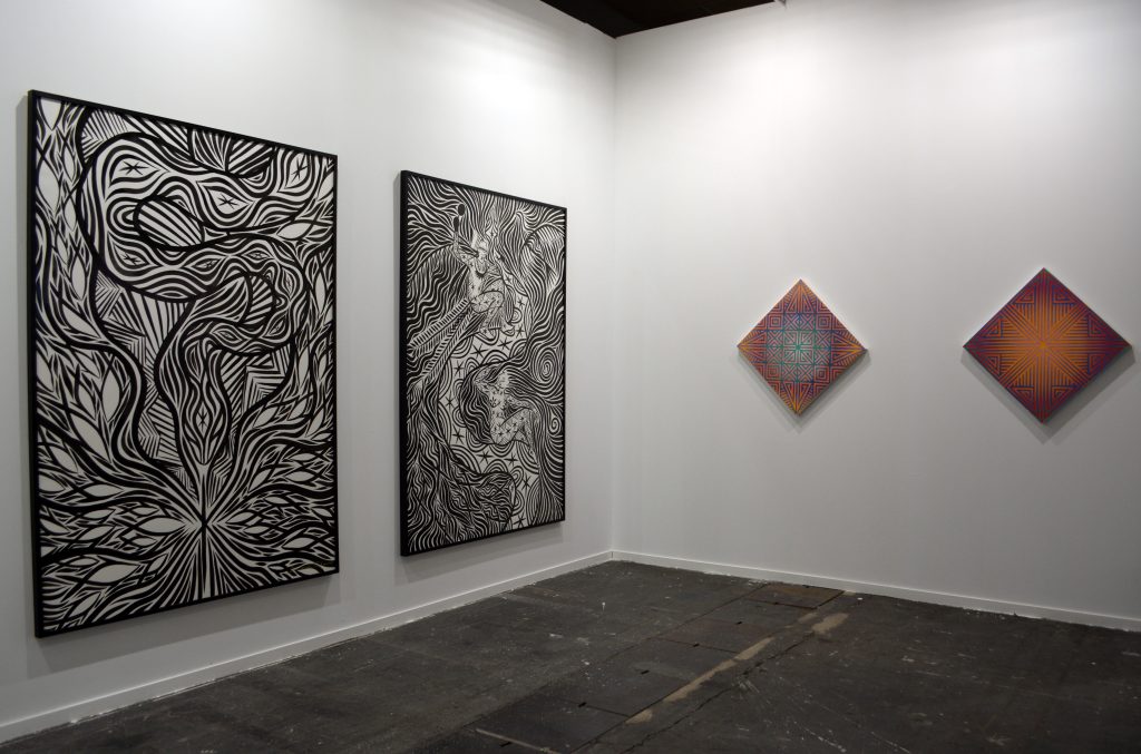 La peruviana Violeta Quispe Yupari (Vigil Gonzales, Buenos Aires e Cusco), figlia di Gaudencia Yupari e Juan Walberto Quispe, due artisti originari della comunità contadina di Sarhua, nella regione andina di Ayacucho, recupera la tradizione della pittura su legno (Tablas de Sarhua) usando colori particolarmente vibranti per dare voce alle ingiustizie e alle violenze di genere ed affermare così la forza dell’arte come manifesto socio-politico contro le ingiustizie. In un’ottica analoga si pone il lavoro di Daiara Tukano (Richard Saltoun Gallery, Londra e Roma), artista e attivista indigena brasiliana che esplora in maniera visionaria la mitologia e la spiritualità della comunità Tukano, a cui appartiene, e il suo profondo legame con la natura. Quanto a Sandra Gamarra Heshiki è peruviana ma vive a Madrid: è lei l’artista che con il progetto Pinacoteca Migrante (a cura di Agustín Pérez Rubio) rappresenterà la Spagna alla 60. Esposizione Internazionale d’Arte – La Biennale di Venezia. In linea con la sua poetica anche i lavori presentati ad ARCOmadrid (Leme, San Paolo e 80m2 Livia Benavides, Lima) dove la pittura figurativa è lo strumento per “decolonizzare” l’arte e i suoi meccanismi di rappresentazione, esposizione e commercializzazione.