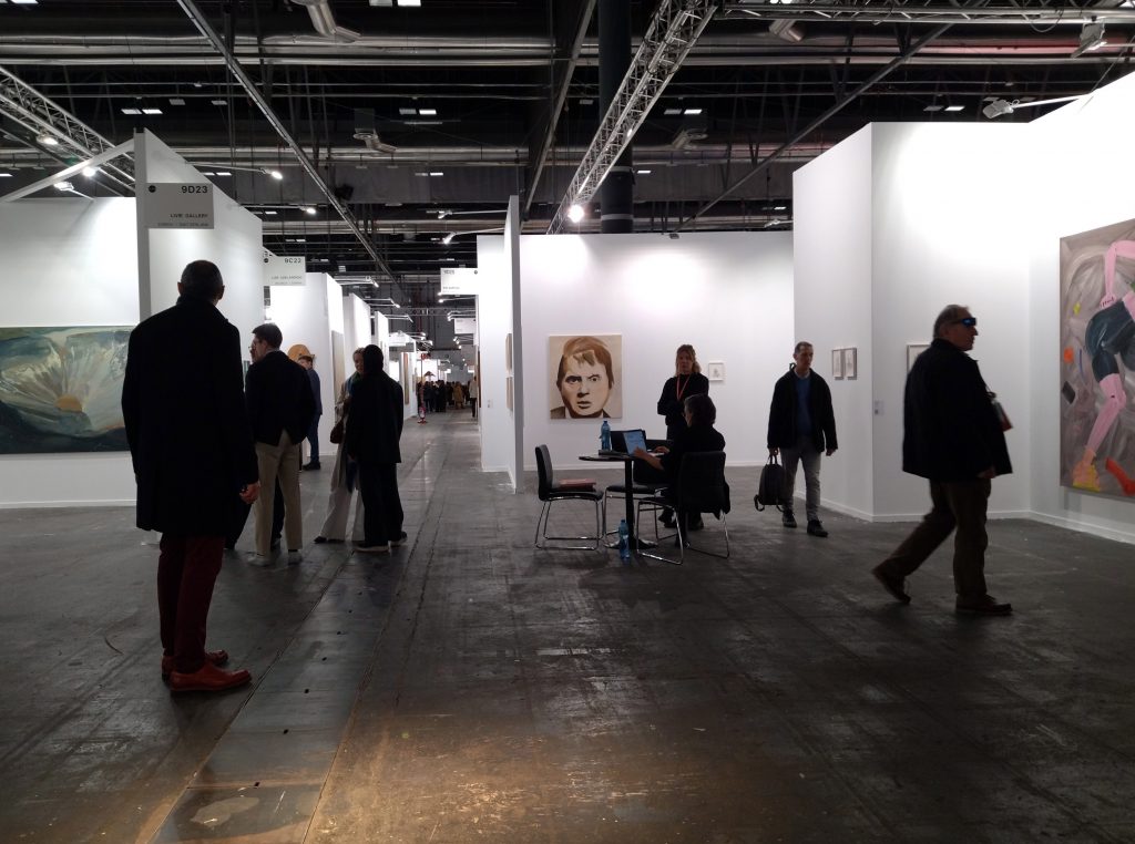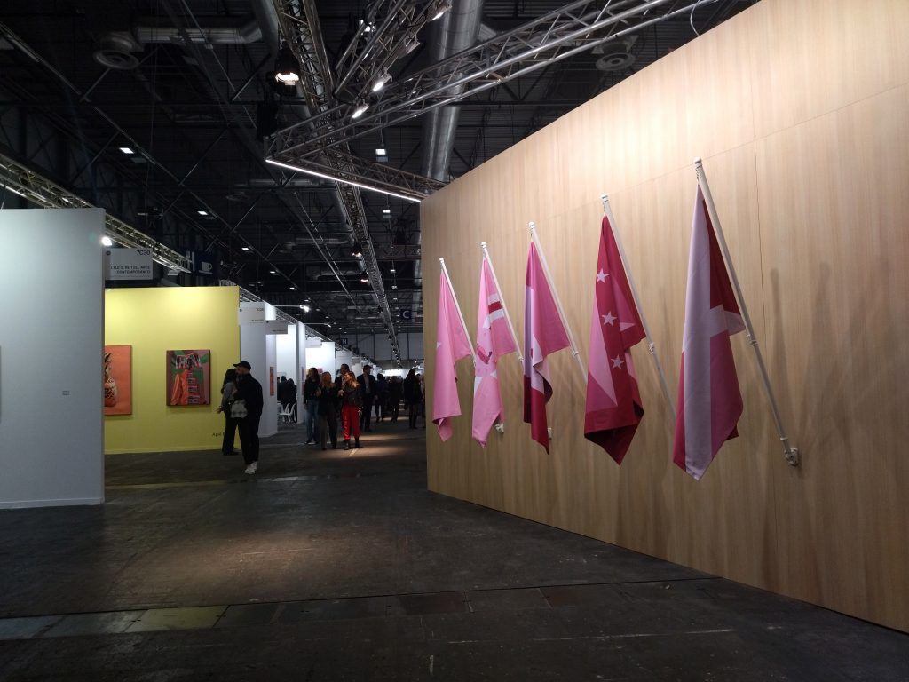 La lunga carta occupa un’intera parete dello stand della galleria Monitor Roma, Lisbona, Pereto (AQ), con quel suo paesaggio astratto “fluttuante” di grande intensità poetica, come del resto lo è l’opera L’Erbario che Montessori ha realizzato nel 1978, tra le acquisizioni a ARCOmadrid 2024 del Museo Nacional Centro de Arte Reina Sofía di Madrid. Due artiste appartenenti a generazioni diverse: entrambe le opere, tra l’altro, sono state già esposte in altri contesti, la prima nel 2021 al Malba – Museo de Arte Latinoamericano Buenos Aires e la seconda nella personale La camera bianca (2020) alla Fondazione Giuliani di Roma. Di rimandi al colore azzurro ce ne sono tantissimi, intercettabili in numerose altre opere d’arte contemporanea tra le centinaia in vendita nelle hall 7 e 9 del complesso fieristico di Ifema Madrid che firma l’organizzazione dell’evento: ci sono i moduli di acciaio inossidabile ed altri materiali in Cirrocumulus Uncinus Fluctus/M+I di Tomás Saraceno (neugerriemschneider, Berlino) ed è azzurra la parete che accoglie l’installazione testuale Around the world di Lawrence Weiner (Cristina Guerra Contemporary Art, Lisbona), così come i cieli della serie Paisajes dipinti ad olio da Daniela Ortiz (Àngels Barcelona, Barcellona) che raffigurano temi legati al razzismo, al patriarcato e all’immigrazione citando anche l’attivista Lolita Lebrón (1919-2010), figura carismatica della scena politica portoricana. Di respiro internazionale, ARCOmadrid con la presenza di 205 gallerie di 36 paesi si conferma come piattaforma di riferimento in Europa per l’arte del Centro e Sud America con ben 38 gallerie, in particolare dall’Argentina, Brasile e Messico e l’organizzazione di una seconda sezione dal titolo Never the same. Latin American art, a cura di Manuela Moscoso e José Esparza Chong Cuy in cui è evidenziato il rapporto con la tradizione e il patrimonio culturale.