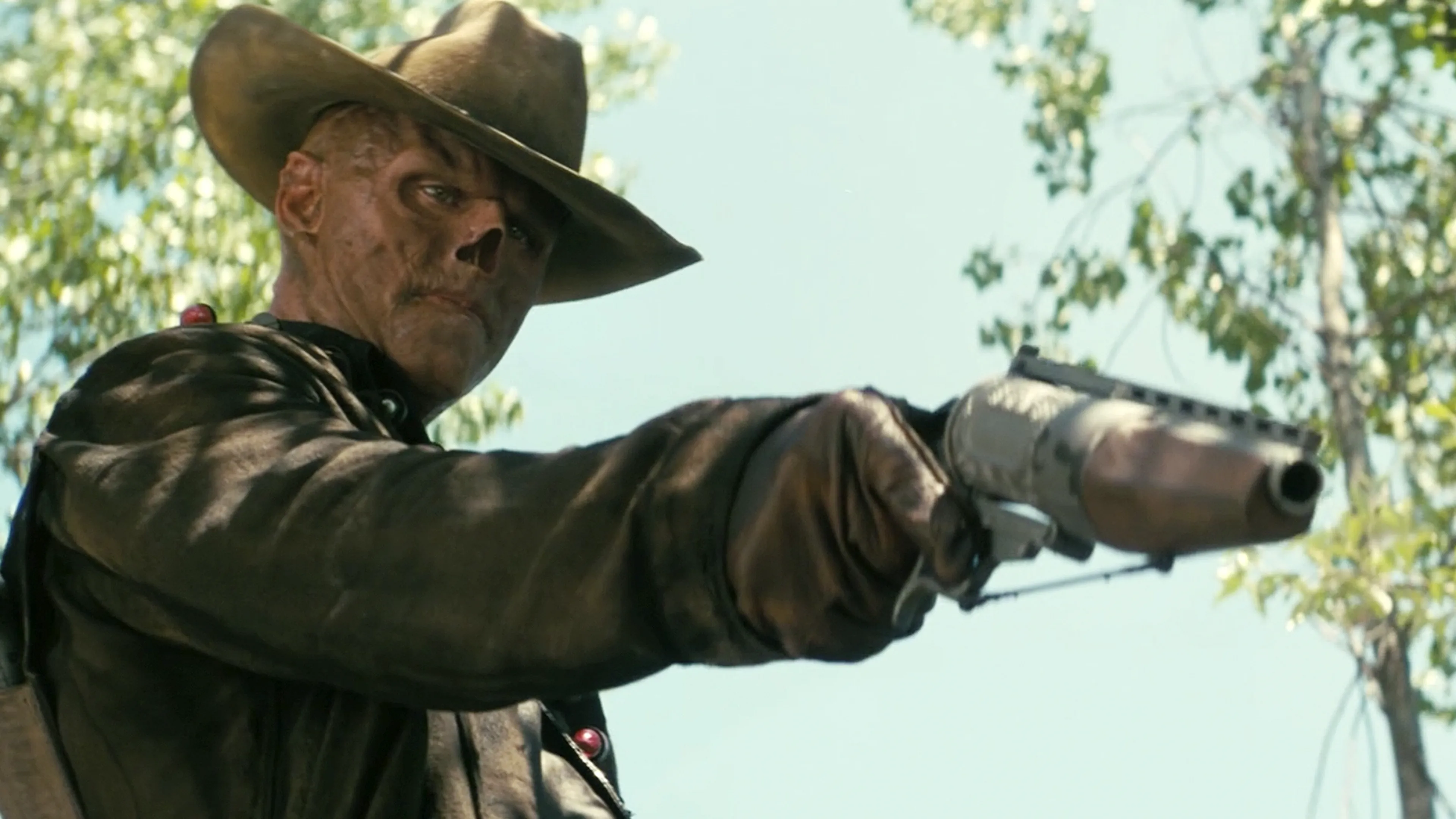 Inizia così un lungo viaggio in una regione devastata dalla catastrofe nucleare ma, soprattutto, dalla violenza e dall’indifferenza umana. È qui che Lucy incontrerà gli altri due personaggi della serie. Maximus (Aaron Moten), impostore che si spaccia per cavaliere della Confraternita d’Acciaio, un esercito religioso che prende a modello i cavalieri delle Crociate e che indossa esoscheletri d’acciaio a propulsione atomica. E il Ghoul, un misterioso cacciatore di taglie interpretato da un magnetico e jacknicholsonesco Walton Goggins (The Shield, CSI, Hateful Eight), che diventa il filo narrativo di tutta la storia. Sfigurato dall’esposizione alle radiazioni, questo necrotico post-umano ha vissuto per due secoli e si rivela il filo conduttore emozionale e storico alla serie. Ha infatti vissuto in prima persona il 2077, anno della guerra termo-nucleare tra USA e Cina.