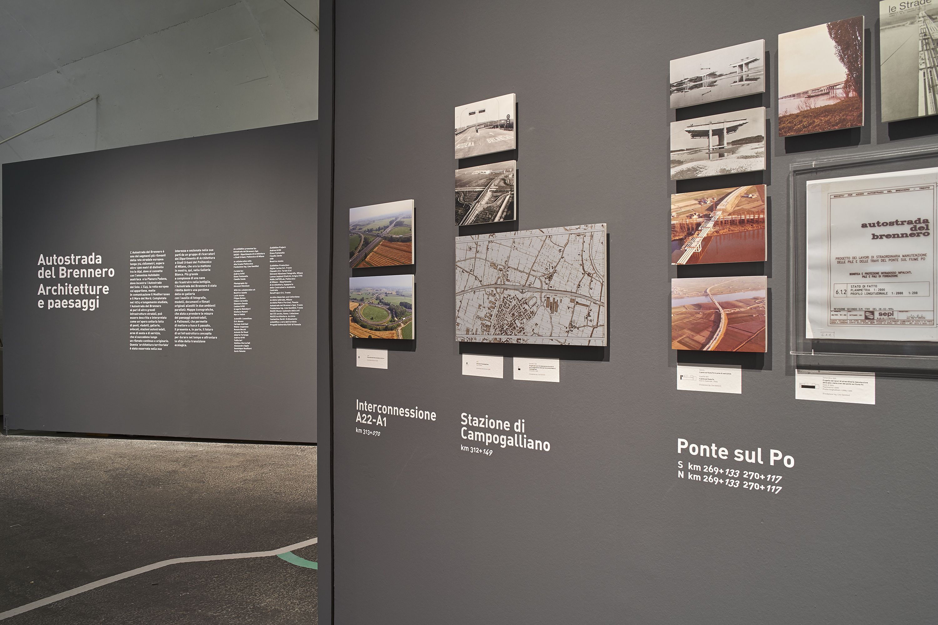 Allestita in un tratto delle Gallerie di Piedicastello a Trento, frutto della collaborazione tra Autostrada del Brennero SpA con il Dipartimento di Architettura e Studi Urbani del Politecnico di Milano e la Fondazione ing. Lino Gentilini, Autostrada del Brennero. Architetture e paesaggi è un’esposizione che indaga l’autostrada A22 come complessa opera di ingegneria, architettura e paesaggio. Esplorando il rapporto tra l’infrastruttura e i territori attraversati lungo i 314 chilometri del tracciato che da Campogalliano conduce fino al passo del Brennero, tramite fotografie e modelli, mappe e diagrammi, video e documenti originali, la mostra vuole portare a vedere l’Autostrada del Brennero da un punto di vista che non è più il finestrino di un automezzo.