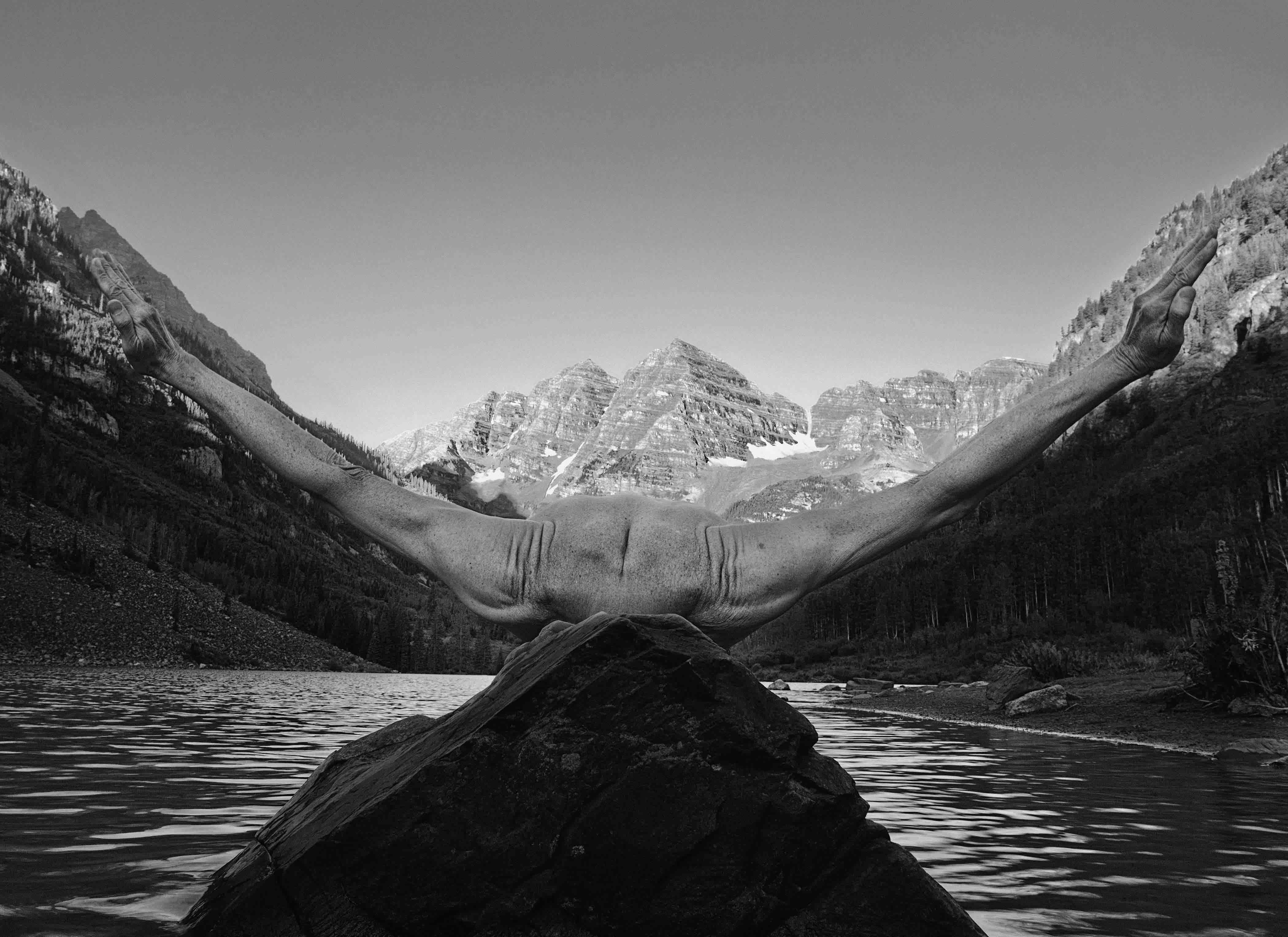Con la linea metropolitana M1 scendiamo a Porta Nuova, per Photo & Contemporary che ospita la personale di Arno Raphael Minkkinen, Body Landscapes. Il fotografo finlandese si ritrae da oltre 50 anni, in accattivanti autoscatti rigorosamente in bianco e nero. Il corpo dell’autore, sempre nudo e con il volto coperto, emerge o si confonde con il paesaggio che lo circonda, fino a diventarne parte integrante.