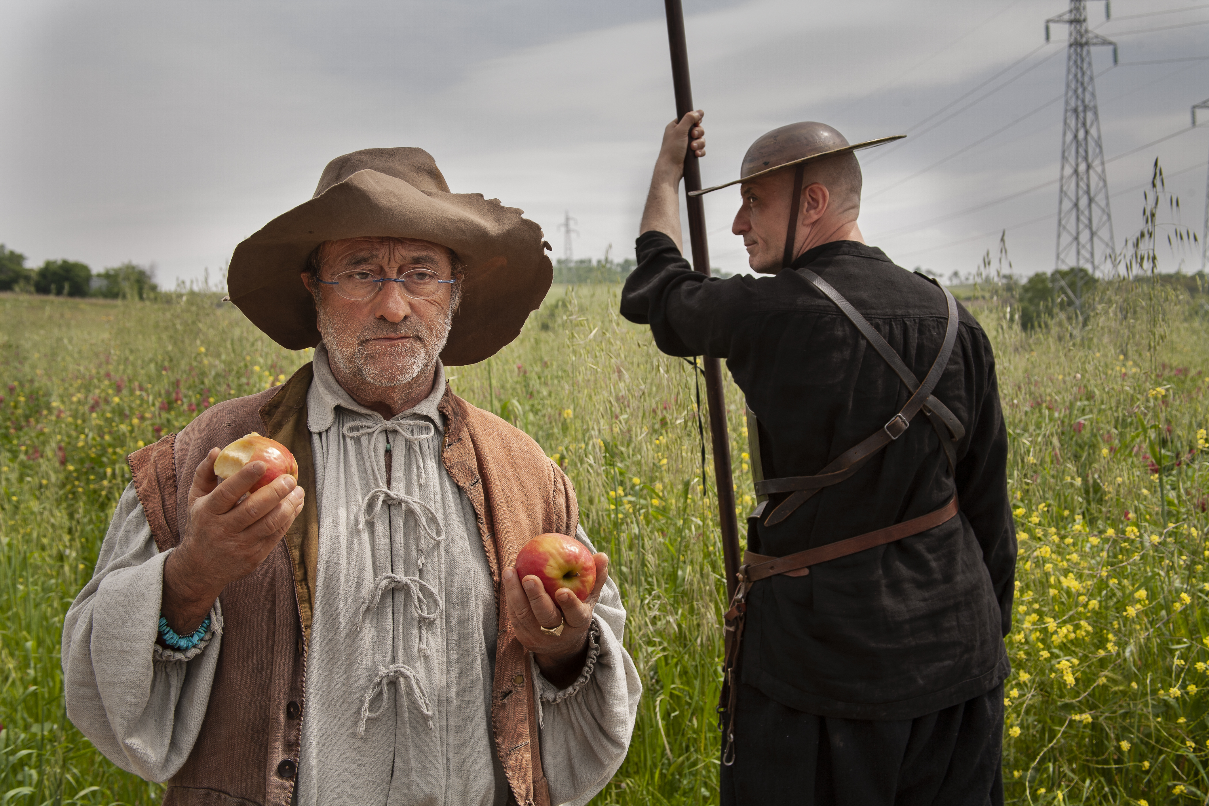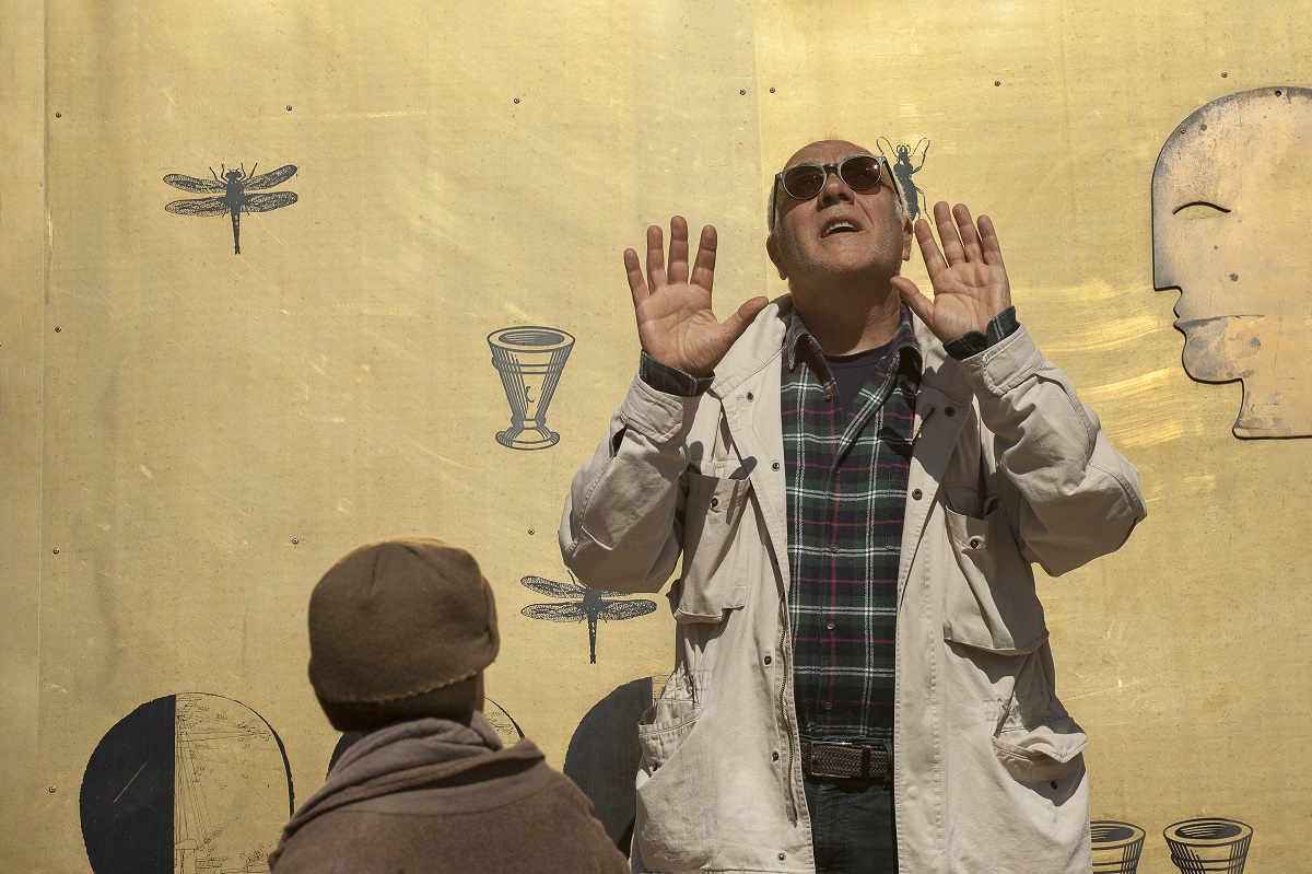 45 le fotografie di scena di grande formato a colori, a cui si affiancano altrettante in bianco/nero di più piccole dimensioni dei vari backstage. L’allestimento non procede per cronologia ma per temi relativi ai vari film, restituendo il rapporto di Paladino con il cinema, che ha origine dalla curiosità di un pittore che lavora con le immagini e cerca sempre nuovi strumenti espressivi. Fotografando i lungometraggi Quijote (2006), La Divina Cometa (2022) e i corti Labyrintus (2013) e Ho perso il cunto (2017), il fotografo si sofferma in particolare sulle varie fasi della lavorazione, dalla ricerca delle location, al dialogo con gli attori, con i tecnici e le maestranze, riuscendo a intercettare l’anima dei film e tutto ciò che solitamente rimane nascosto, attraverso sequenze “senza movimento”.