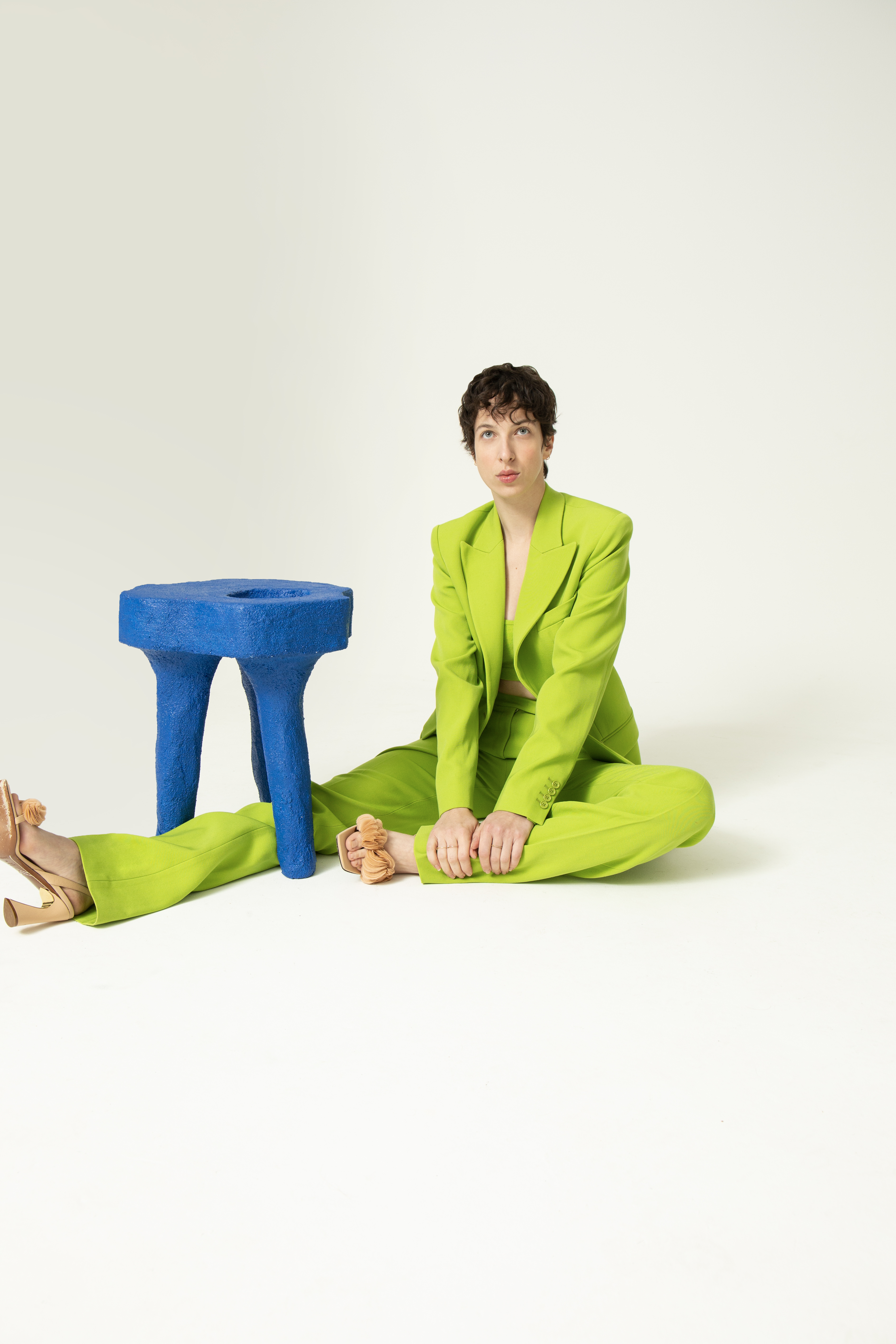 In occasione della Milano Design Week, exibart ha commissionato al fotografo Davide Carson un servizio fotografico in cui sono messi in dialogo alcuni pezzi di design anche storici con altrettanti look moda firmati da noti brand internazionali. Qual è il fil rouge che li lega? Sicuramente le linee essenziali e minimali che si ritrovano sia nella moda, sia nell’interior, come nel caso della poltrona verde di plastica firmata Vico Magistretti (1970 edizione Artemide) cui è stato accostato un abito fluido a schiena nuda di Versace. Uno stile che riesce ad andare oltre le tendenze moda e le epoche.