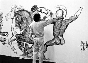 Intorno ad Andrea Pazienza pittore e fumettista, le polemiche sono state aspre «prima e dopo la nostra rivoluzione del 77». Gli hanno rimproverato di non lavorare secondo la tradizione del sistema dell’arte che di lì a poco tentava il riflusso; di introdurre la politica dei versi e dei fumetti e non saperla poi gestire nella prassi militante; di inventare, come altri compagni della mia generazione, formule poetiche sovversive e regressive insieme. In effetti, è stato tanto attivista della satira, quanto di una pittura semplice e diretta, che recuperava l’icona post-pop e post-iperrealista, coniugando incendiari e pompieri sullo stesso fronte. In alcuni momenti, la distanza dal sistema delle arti è stata addirittura feroce, non c’era moderazione che tenesse il passo di tale fermento.