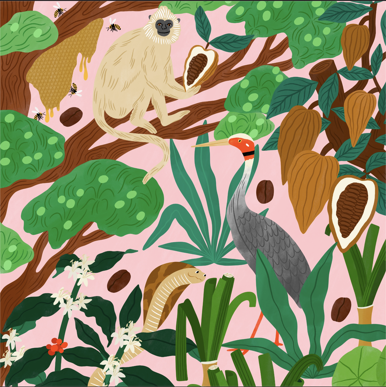 L’olandese Bodil Jane rappresenta l’India con le sue illustrazioni pop dai colori accesi, che mettono in risalto le figure femminili e la natura. Un’altra artista, Amber Vittoria da New York, lavora sulle forme femminili rappresentando il Ruanda. Dabito – fotografo, artista e designer – rappresenta invece il Nicaragua con i suoi colori vibranti e lo stile eterogeneo. Studio Grand-Père rappresenta l’Honduras. Studio Grand-Père è il progetto della designer brasiliana Rafaela Mascaro nato per incoraggiare coloro che vogliono condividere la creatività in tutto il mondo.