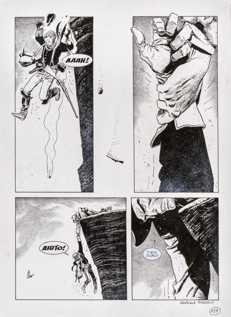 E così, mentre in America Amazing Fantasy #15 – il debutto di Spider-Man del 1962, per intenderci – viene aggiudicato per $3,6 milioni, Art-Rite si impegna nella promozione di un tesoro che è tutto straordinariamente italiano. Tra i lotti in catalogo troviamo Basta Amore di PAZ e del collega e direttore Vincenzo Sparagna, pennarello e collage su carta applicato su cartone del 1985 (stima € 6.000 – 8.000); Meglio un falso bello di Stefano Tamburini, tecnica mista e collage su carta del 1984, sarà invece offerto con una stima di € 3.000 – 4.000; e non mancano due Bonelliani per gli amanti dell’illustrazione: Enrique Breccia, che partecipa alla vendita con la pag.129 di Tex – Capitan Jack (stima € 600 -1.200), e Akab di cui è presentata la tavola originale di pag. 20 del Dylan Dog Color Fest n. 16 (stima € 500 – 700).