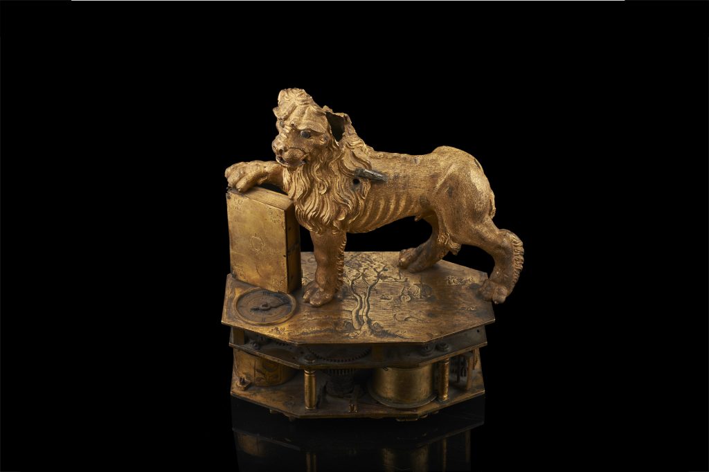 – C’è un importante orologio da tavolo al lotto 420, con tanto di automa a mo’ di leone alato ad opera del seicentesco Johann Ott Halleiker. Un automa, sì: gli occhi scorrono a destra e sinistra, mentre sia la bocca che la lingua (ora non più presente) si muovono scandite dalle suonerie. Parla chiaro la frase incisa sotto la zampa destra: «PAX TIBI MARCE EVANGELISTA MEUS». Parole tradizionalmente associate all’Evangelista Marco, poi divenute il motto della Serenissima: senza ombra di dubbio, l’orologio è stato creato per il mercato di questa città. Stima: € 6.000-7.000