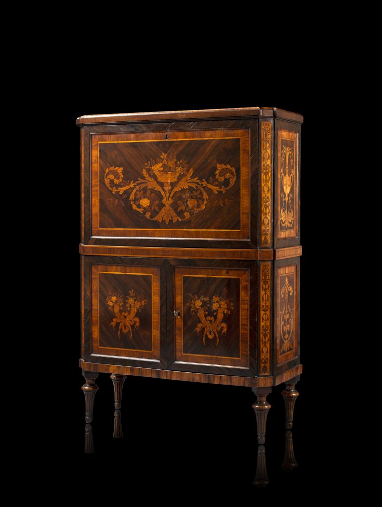 – Primo lotto eccezionale, un secrétaire di Giuseppe Maggiolini, riccamente intarsiato in noce e abete. La stima è di € 52.000 – 54.000.