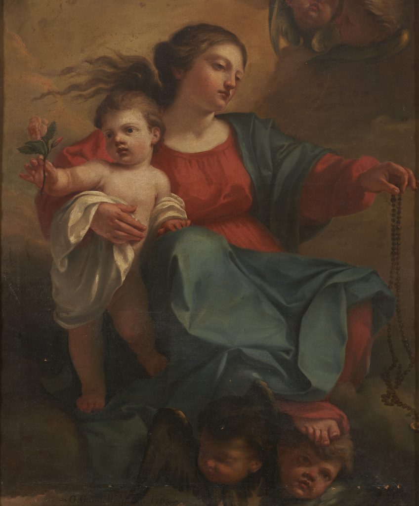 – Sosta al lotto 278, si tratta di una Madonna con Bambino realizzata nel 1763. I cherubini paffuti, i panneggi eleganti, i gesti materni, gli sguardi volti altrove. «L’inedito dipinto», riporta la scheda di catalogo, «testimonia lo stile pittorico di un giovane Gaetano Gandolfi, a tre anni dal soggiorno veneziano. L’opera misura il graduale processo di rinnovamento a seguito della esperienza formativa nella Serenissima di un’artista che “si impegna a innestare sul fondamento della sua cultura bolognese, attento alle novità della pittura romana, le suggestioni dell’arte veneta”»