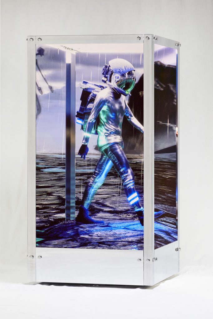Che cosa sarà offerto in pratica da Christie’s, a New York? Secondo le prime anticipazioni, la scultura ibrida consisterebbe in quattro schermi video interconnessi e attraversati da Human One, un astronauta dal passo ritmico che fluttua, superficie dopo superficie, tra paesaggi distopici. Una sorta di grande teca, o forse più una cabina del telefono, dove sia l’opera sia il suo NFT mostreranno immagini che variano di continuo, estratte da un pool di creazioni visive aggiornate dall’artista per tutta la sua esistenza.